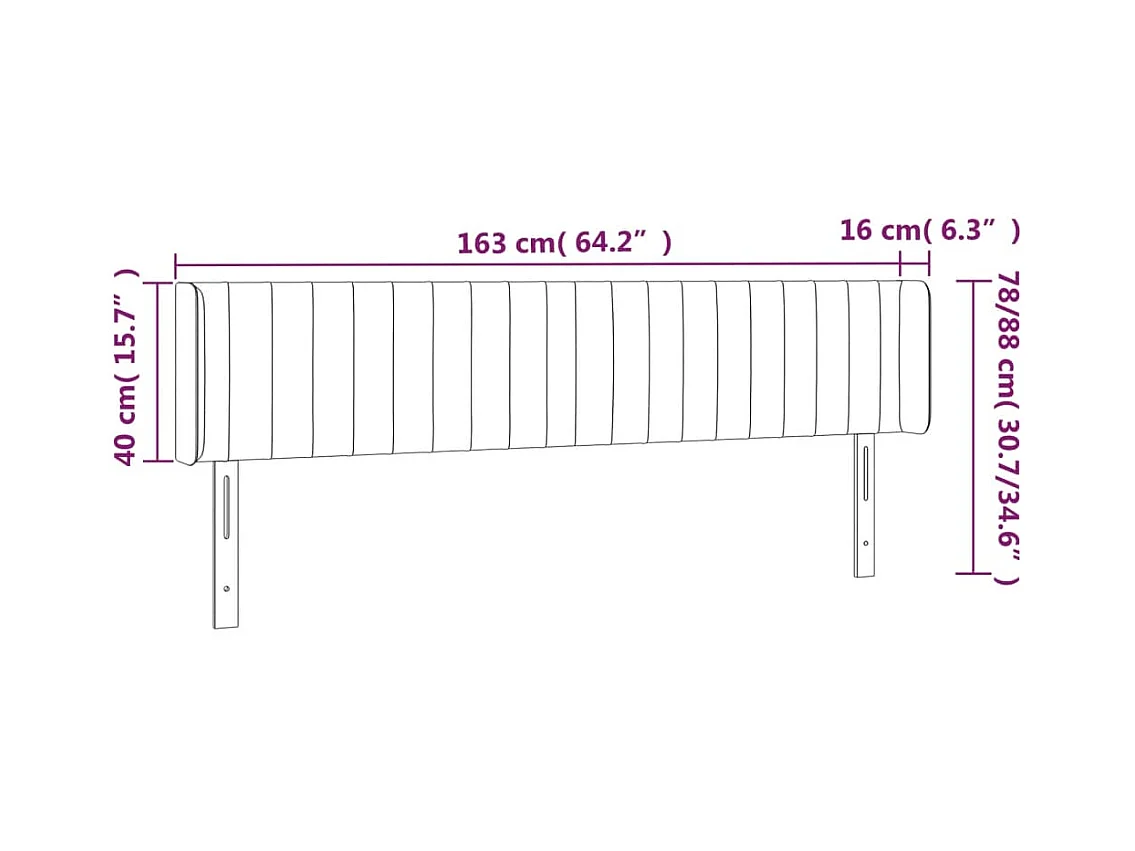 Cabeceira de cama c/ abas veludo 163x16x78/88cm cinzento-escuro