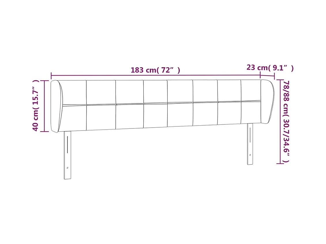 Cabeceira de cama c/ abas veludo 183x23x78/88cm azul-escuro