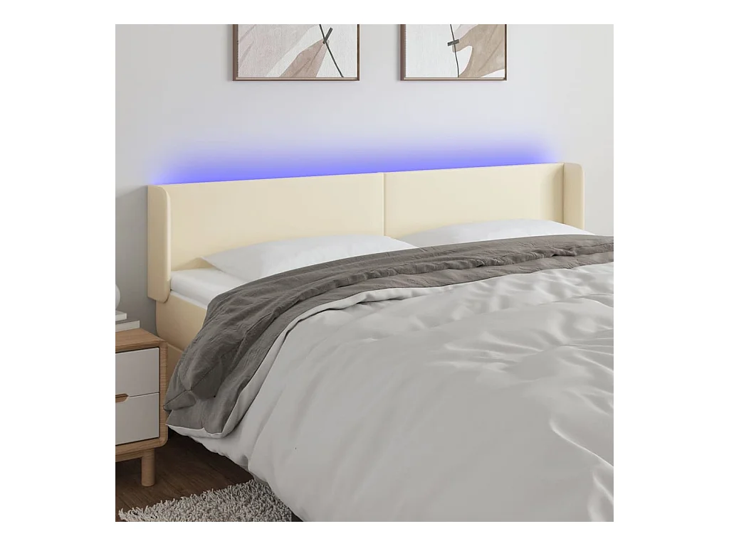 Cabeceira de cama c/ LED 163x16x78/88 cm couro artificial crème PT329391