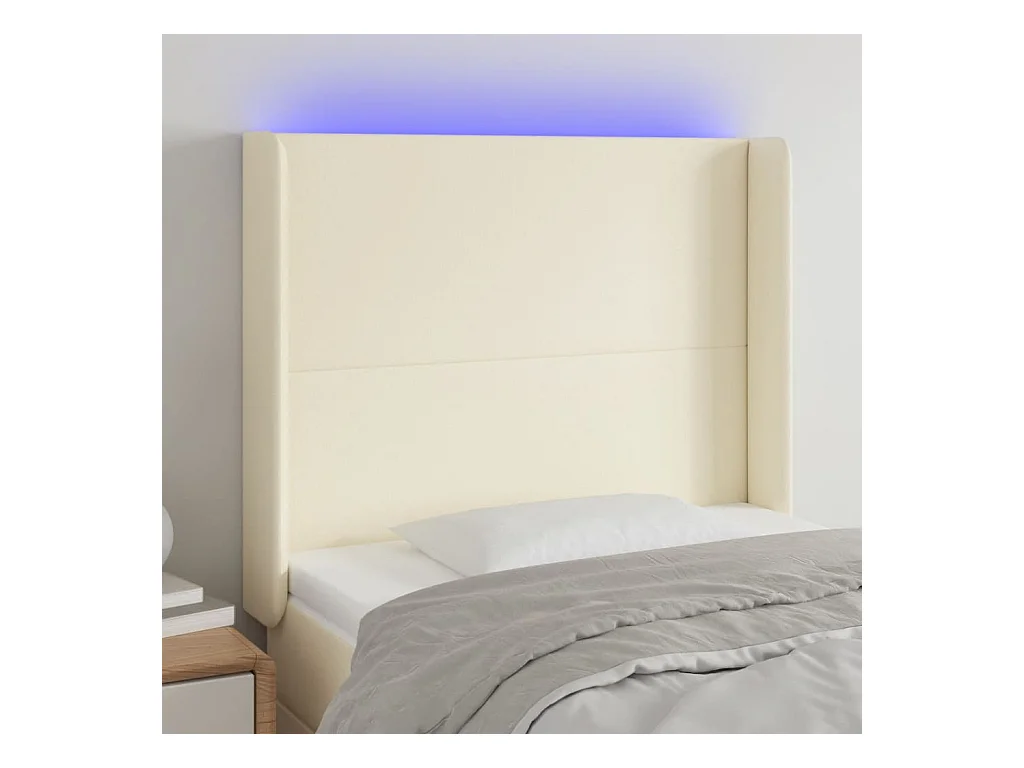 Cabeceira cama c/ luzes LED tecido 103x16x118/128 cm cor creme PT256098