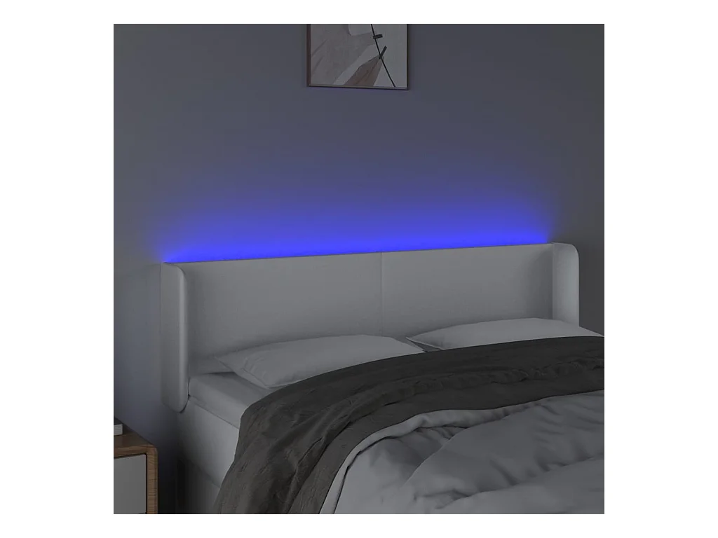 Cabeceira de cama c/ LED couro artificial 147x16x78/88cm branco PT591117