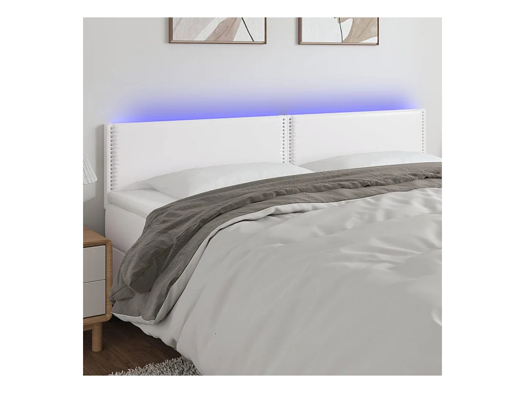 Cabeceira de cama c/ LED couro artificial 180x5x78/88 cm branco