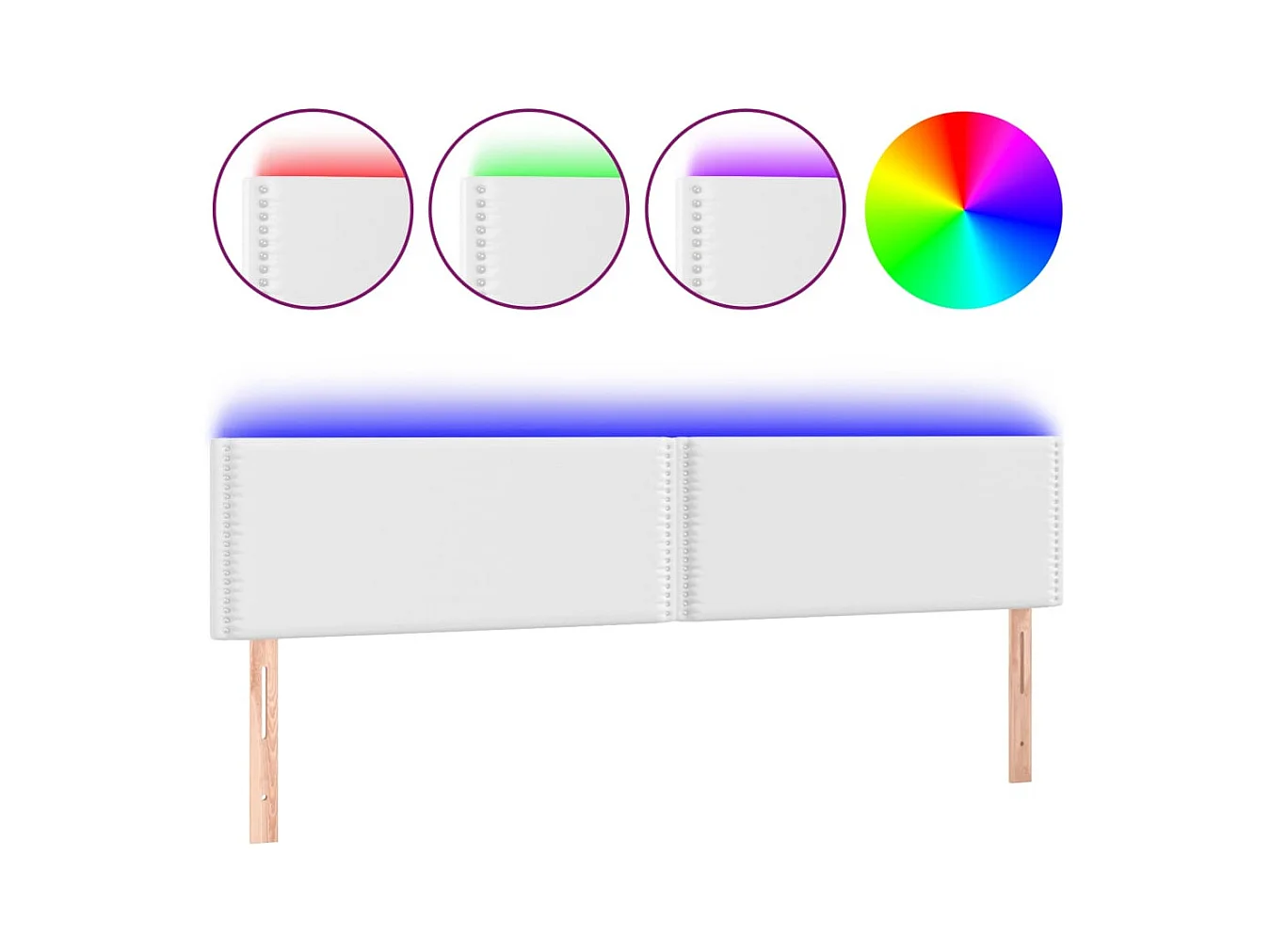 Cabeceira cama c/ LED couro artificial 183x16x118/128 cm branco