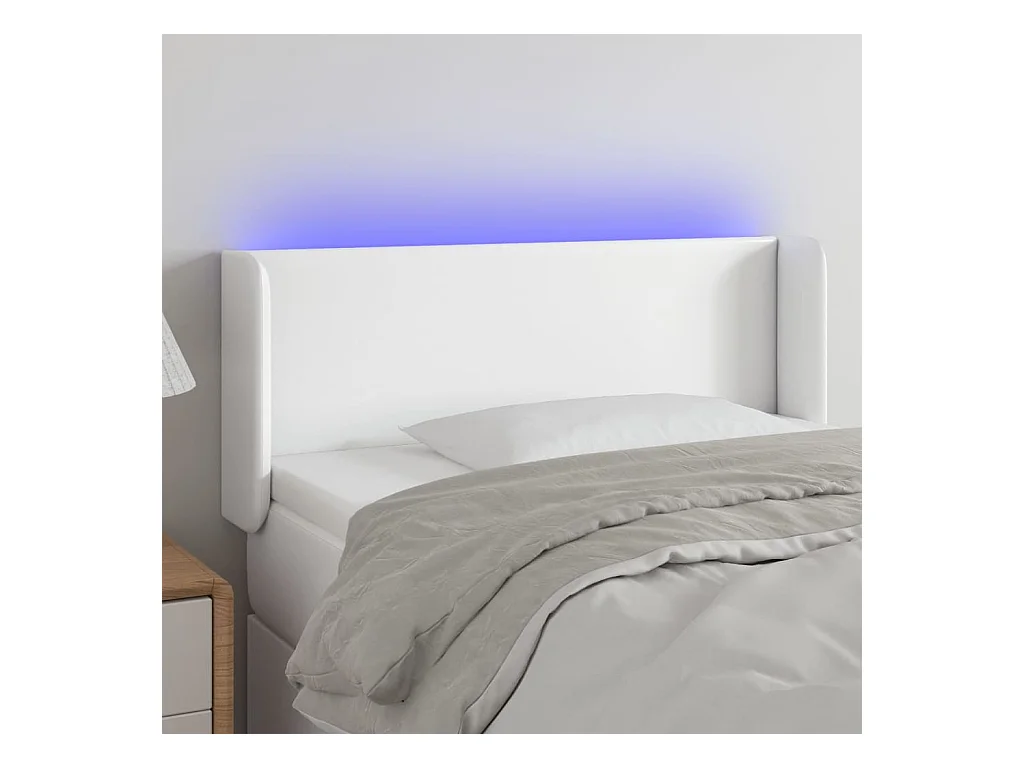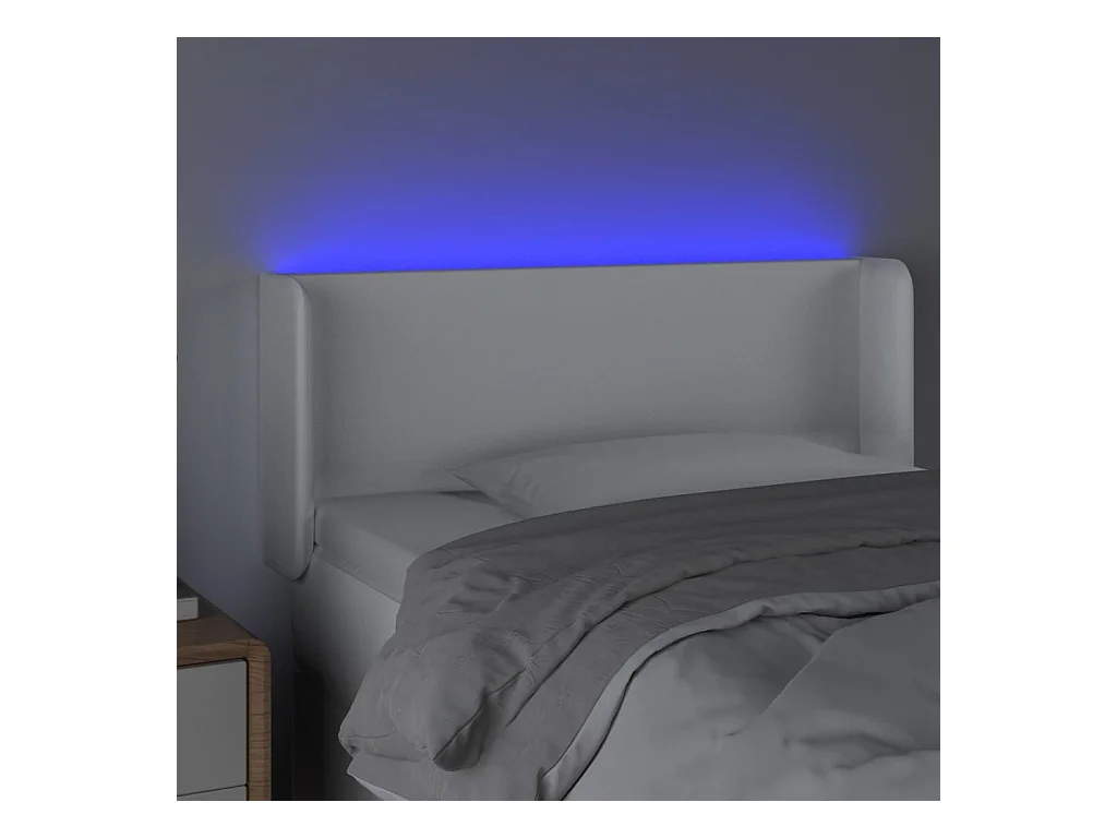Cabeceira de cama c/ LED couro artificial 93x16x78/88 cm branco PT280188