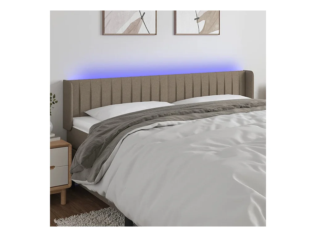 Cabeceira cama c/ LED tecido 183x16x118/128cm cinza-acastanhado PT204066