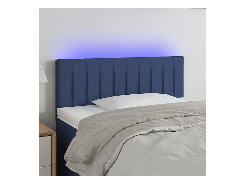 Cabeceira de cama c/ luzes LED tecido 100x5x78/88 cm azul