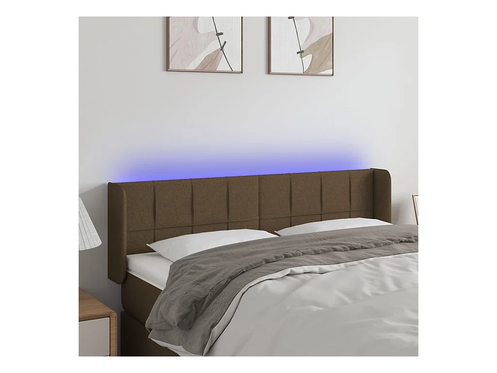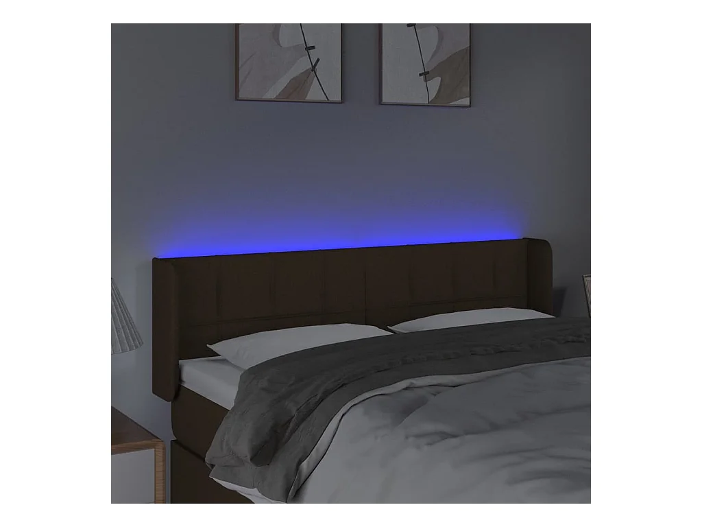 Cabeceira de cama c/ luzes LED tecido 147x16x78/88 cm castanho PT721530