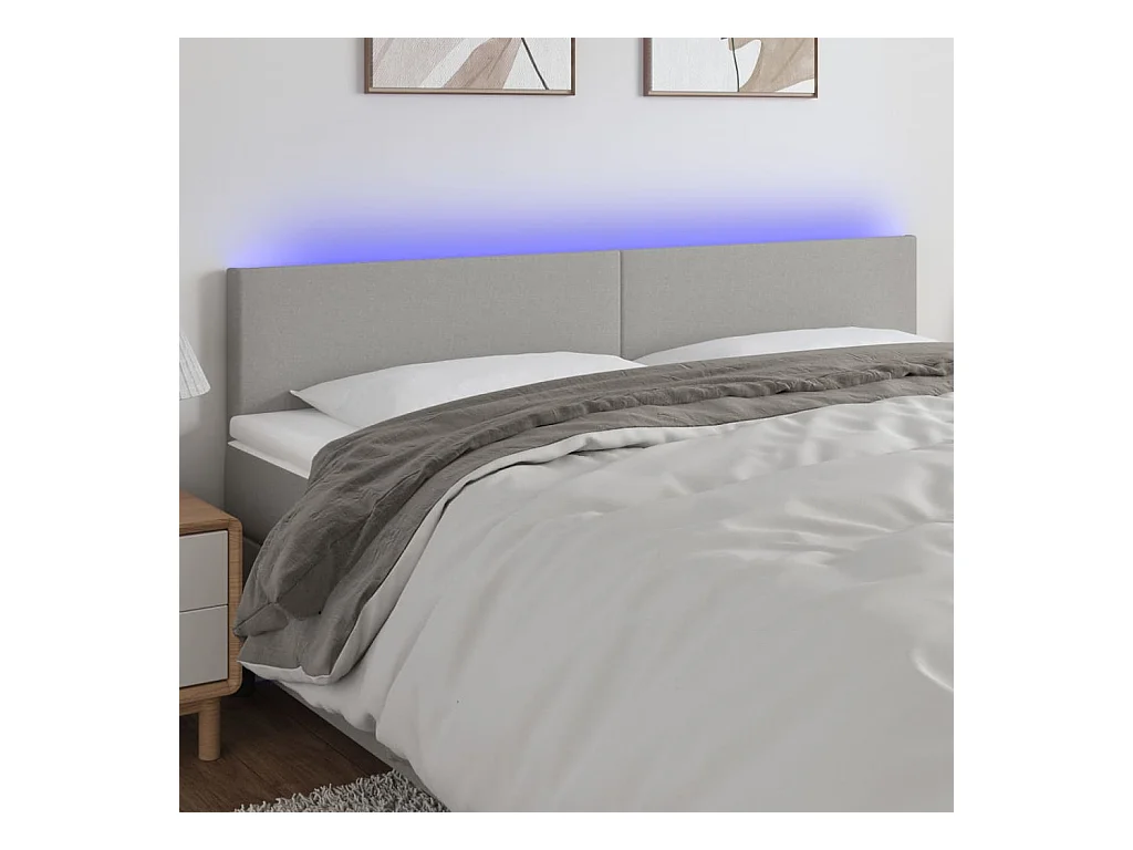Cabeceira de cama c/luzes LED tecido 160x5x78/88 cm cinza-claro