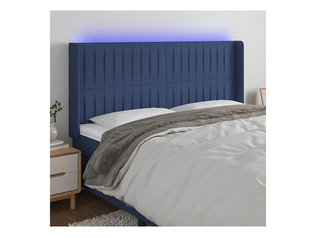 Cabeceira de cama c/ luzes LED tecido 183x16x118/128 cm azul PT938000