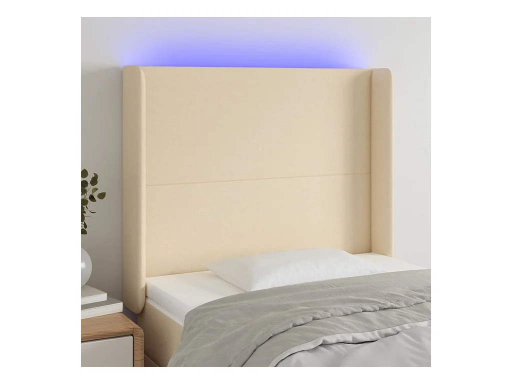 Cabeceira de cama c/ luzes LED tecido 93x16x118/128cm cor creme PT955901