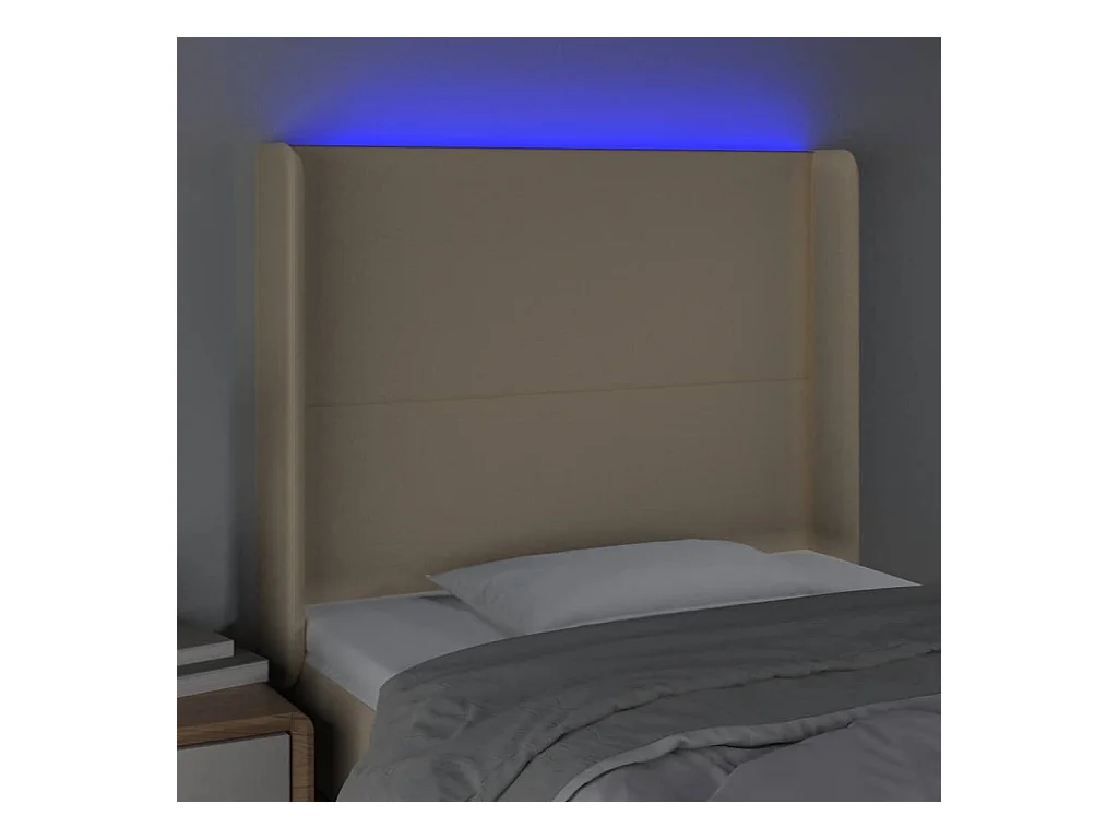 Cabeceira cama c/ luzes LED tecido 103x16x118/128 cm cor creme PT256098