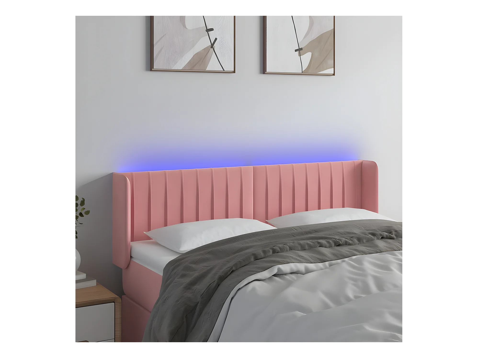 Cabeceira de cama c/ luzes LED veludo 144x7x78/88 cm rosa