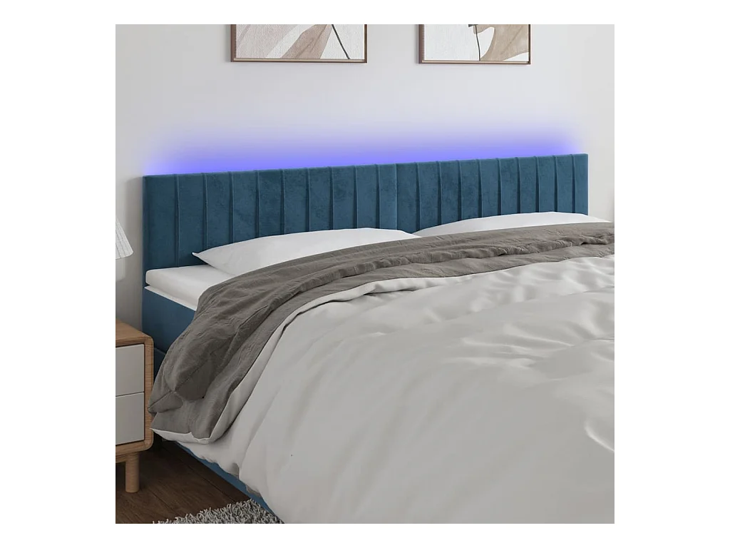 Cabeceira de cama c/ luzes LED veludo 180x5x78/88cm azul-escuro PT109096