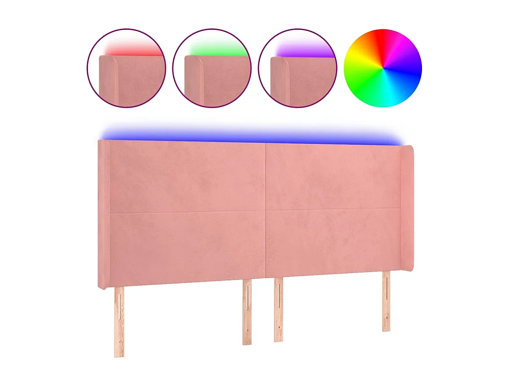 Cabeceira de cama c/ luzes LED veludo 183x16x118/128 cm rosa PT480047