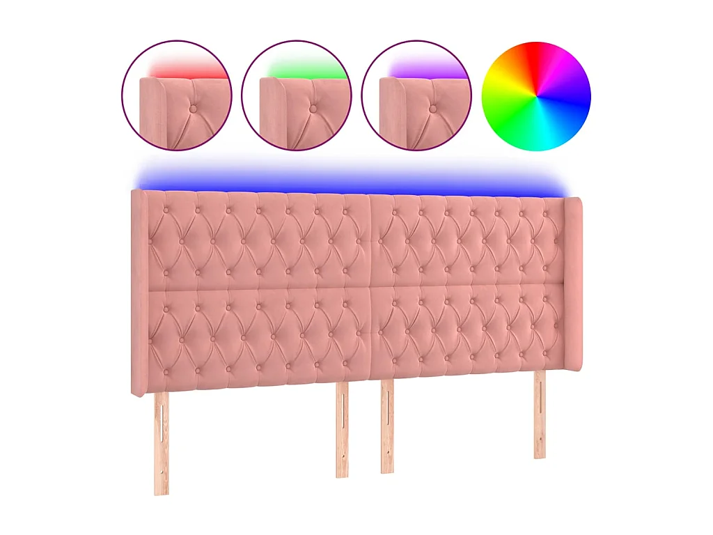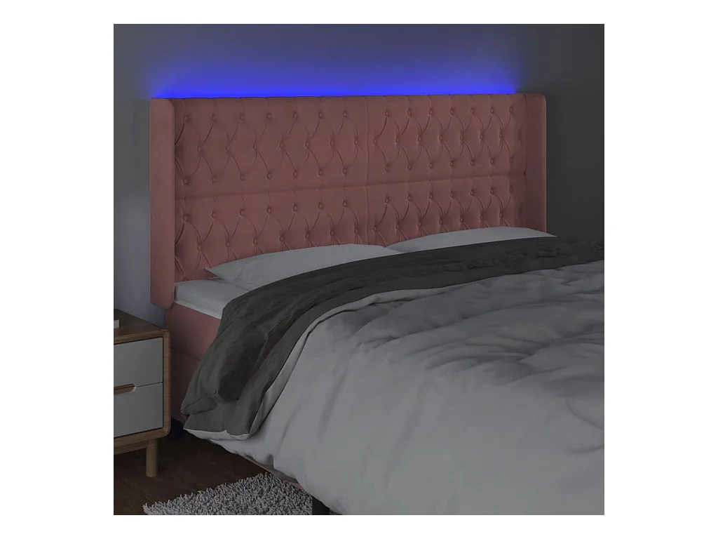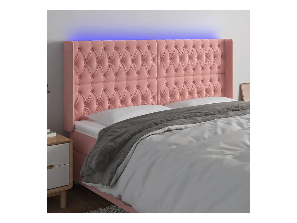 Cabeceira de cama c/ luzes LED veludo 183x16x118/128 cm rosa PT480047