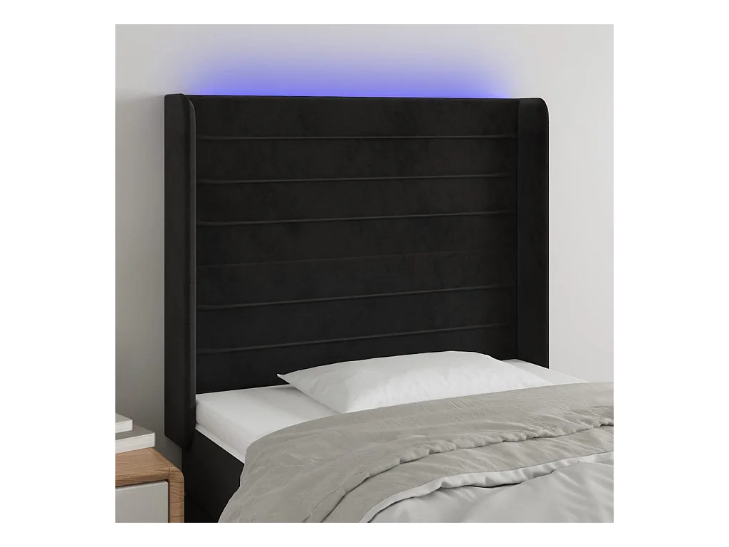 Cabeceira de cama c/ LED veludo 90x5x118/128cm preto