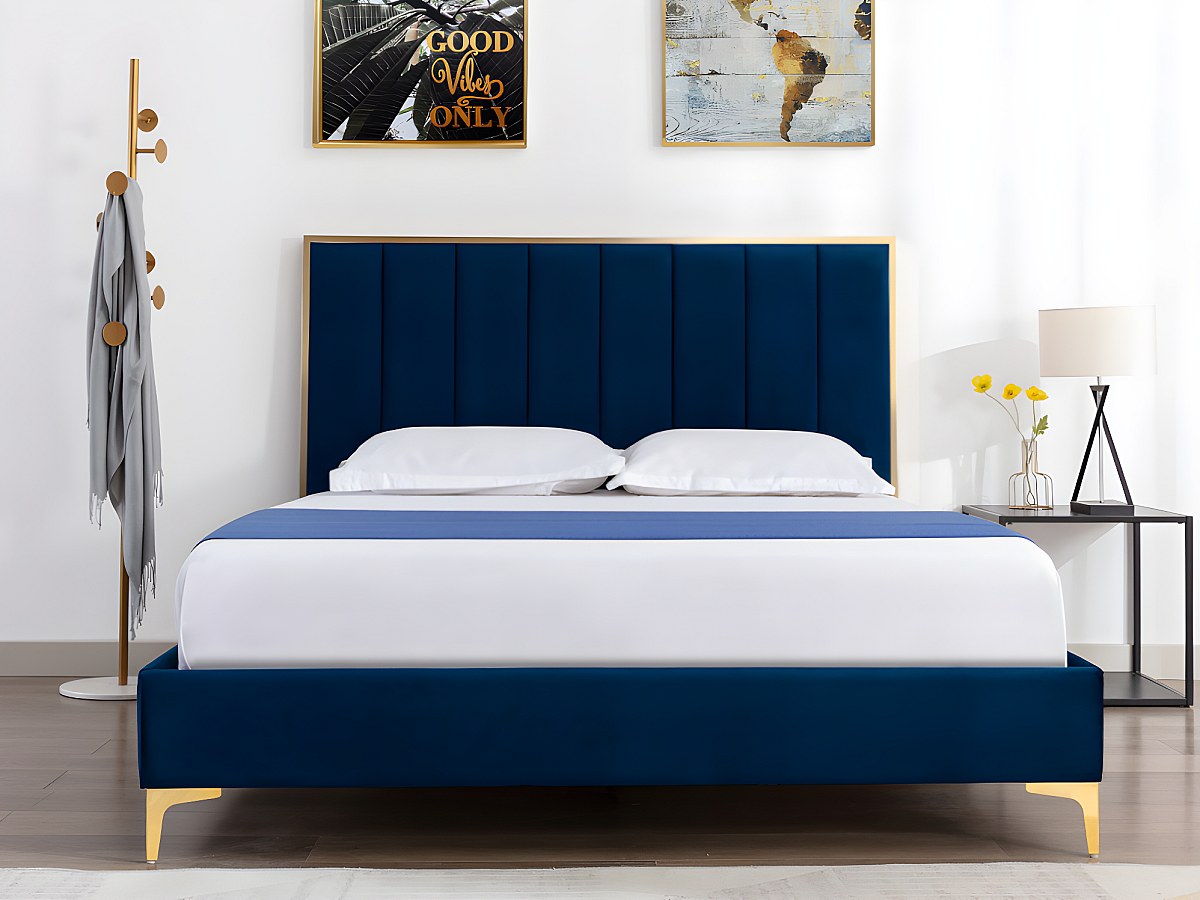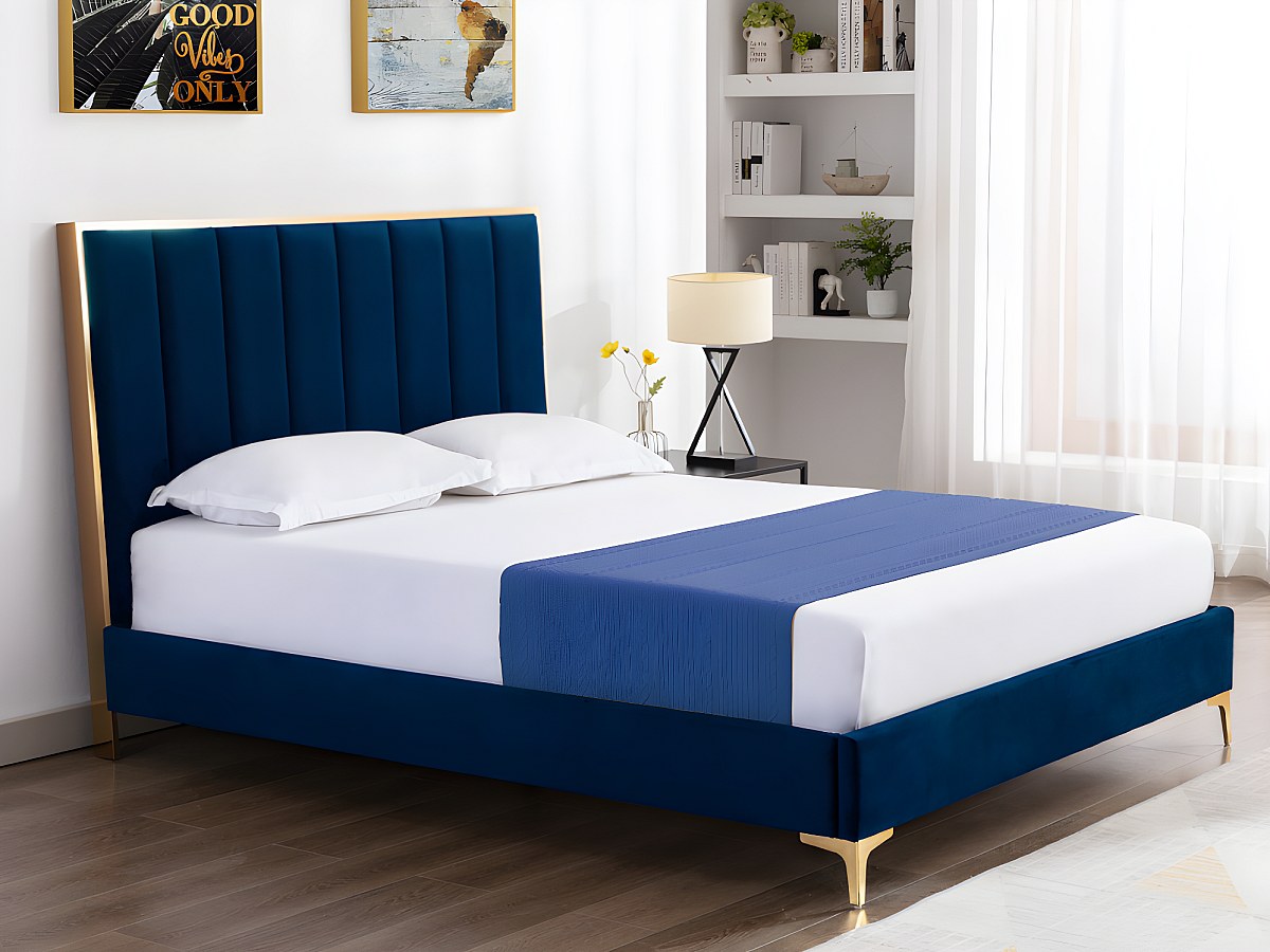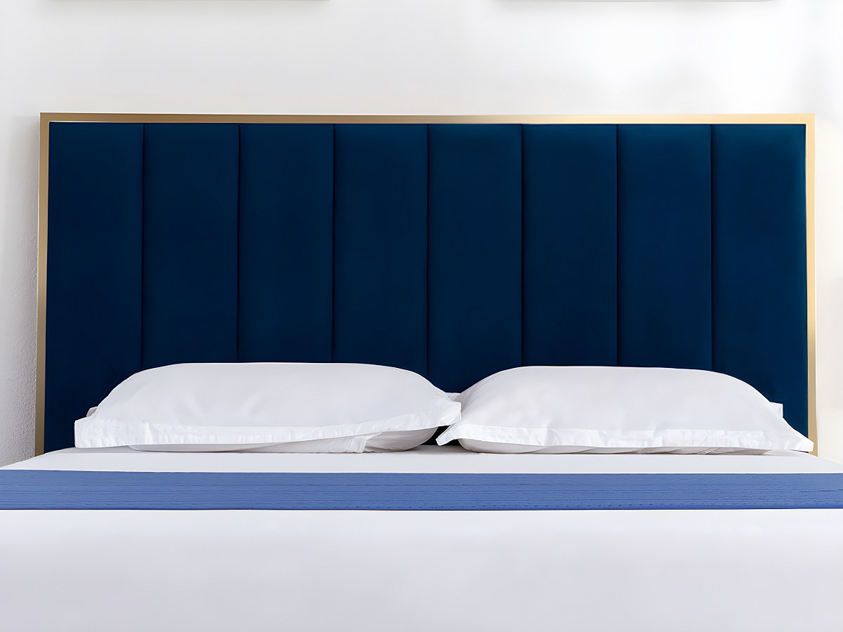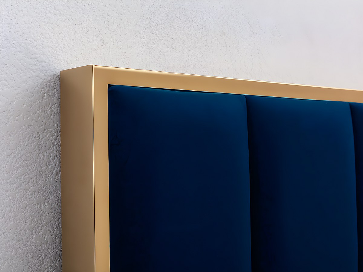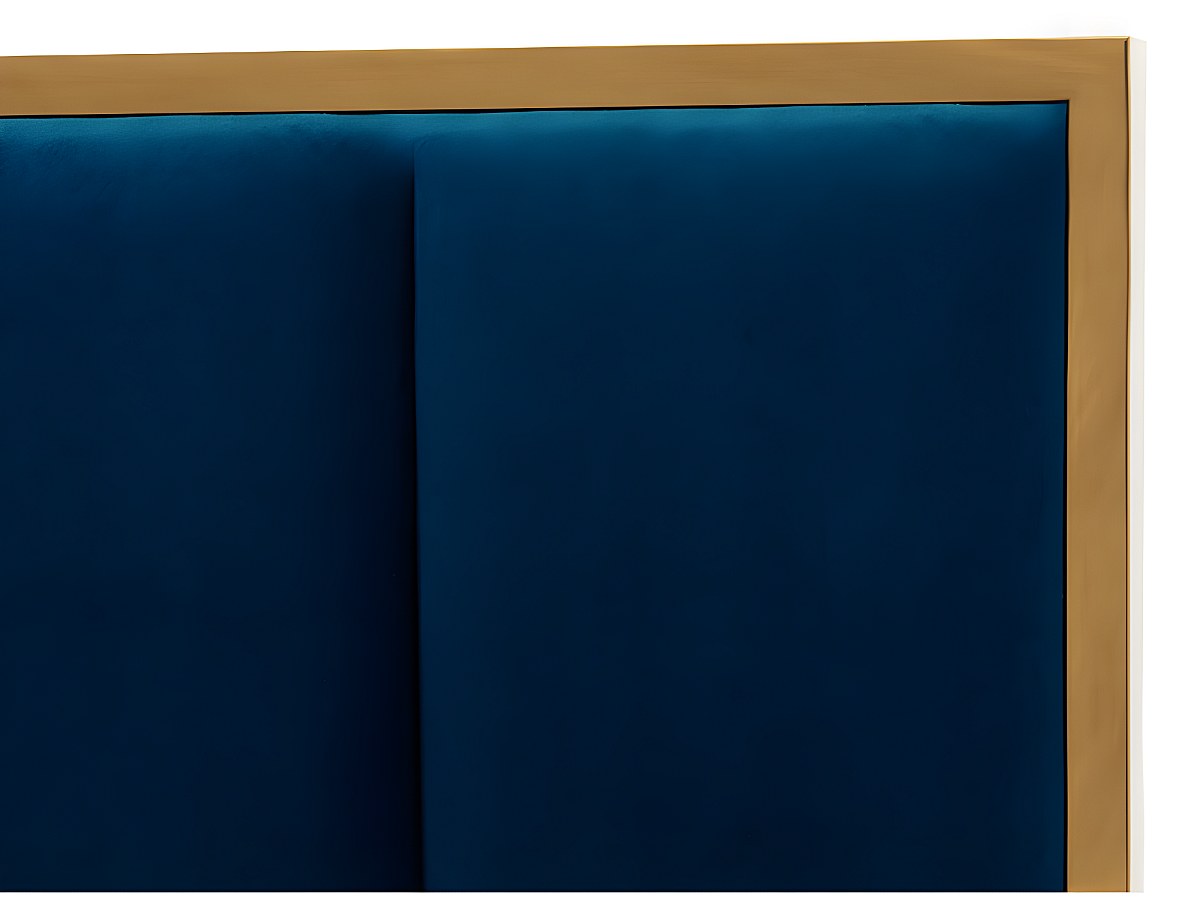 Cabeceira de cama com costuras verticais de 160 cm em veludo cor azul real e dourado - CLARISSE