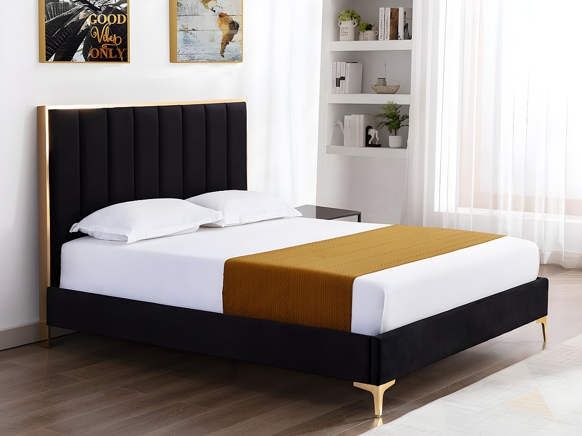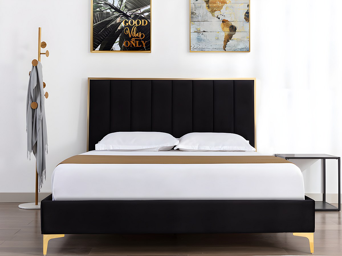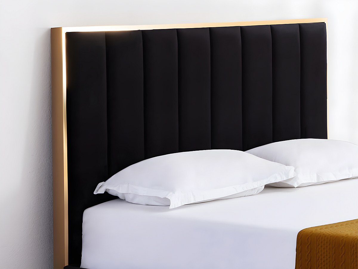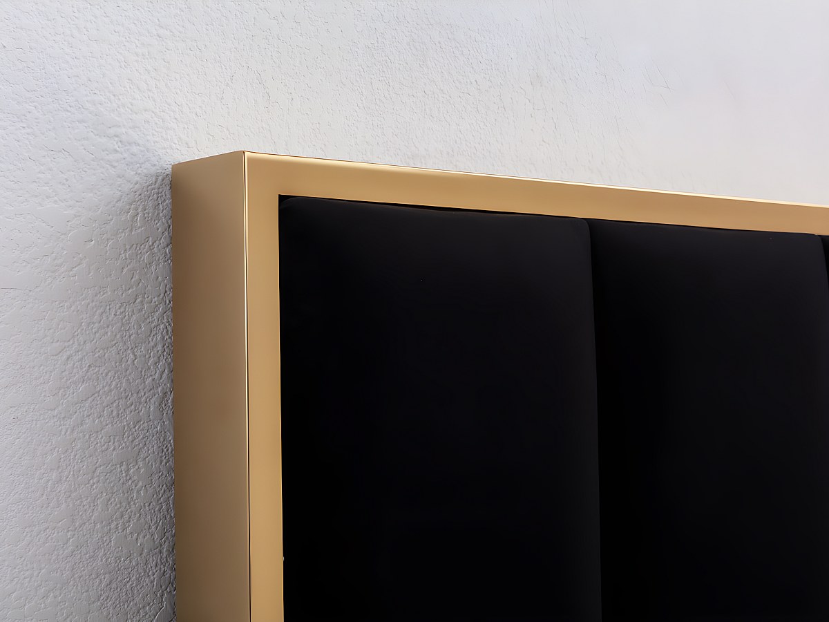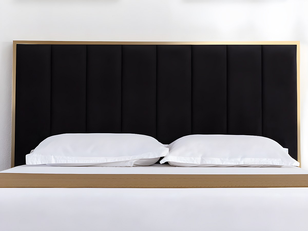 Cabeceira de cama com costuras verticais de 160 cm em veludo cor preto e dourado - CLARISSE