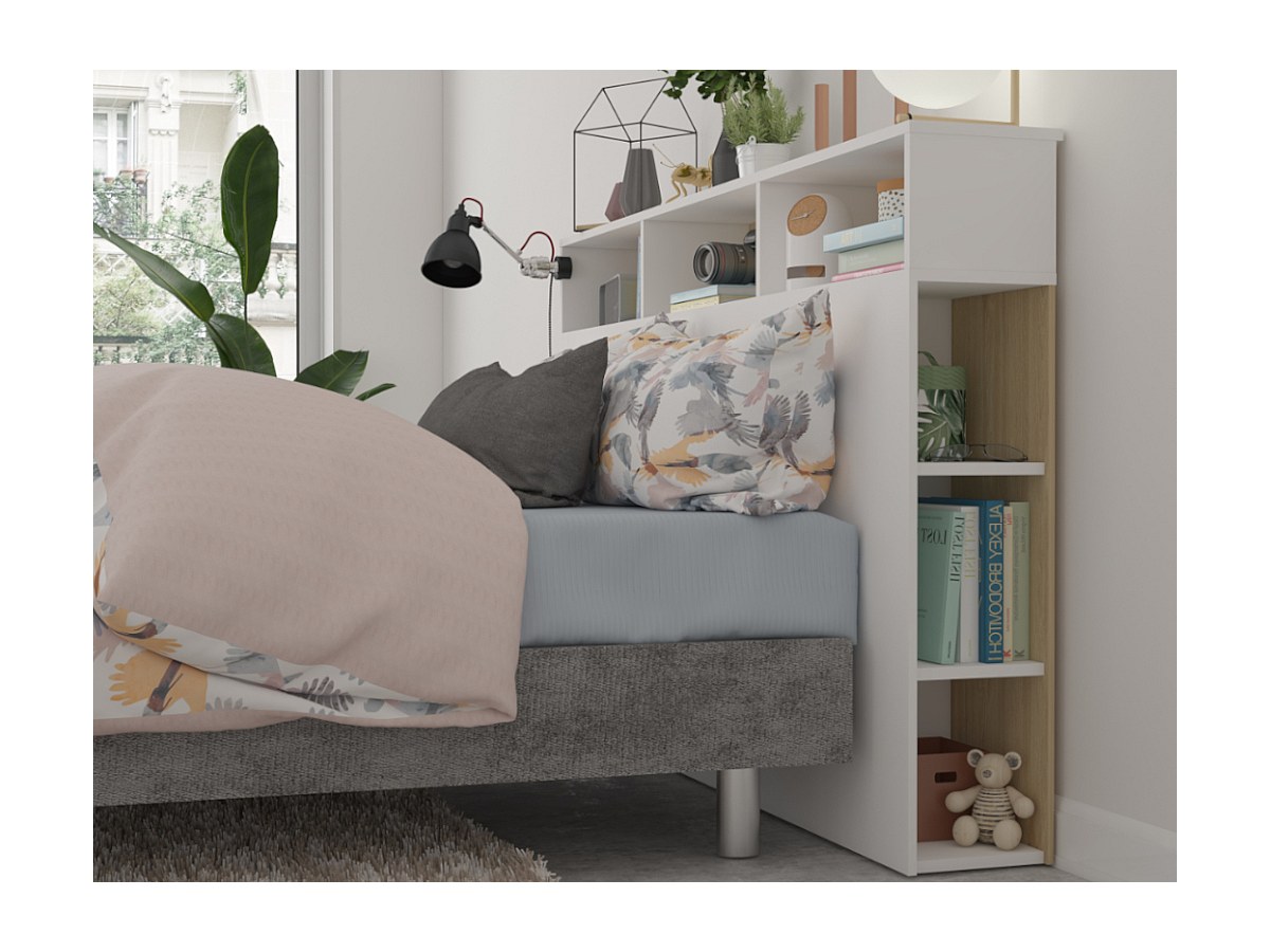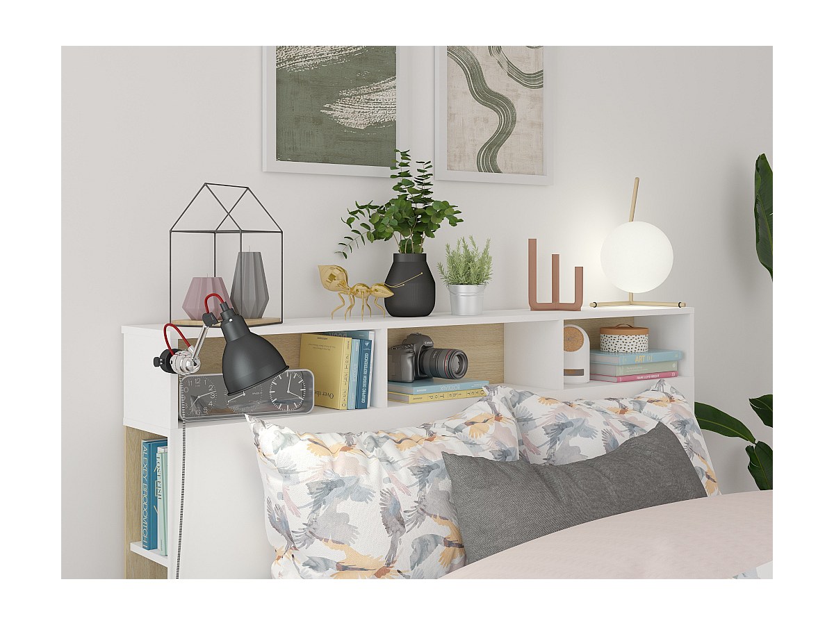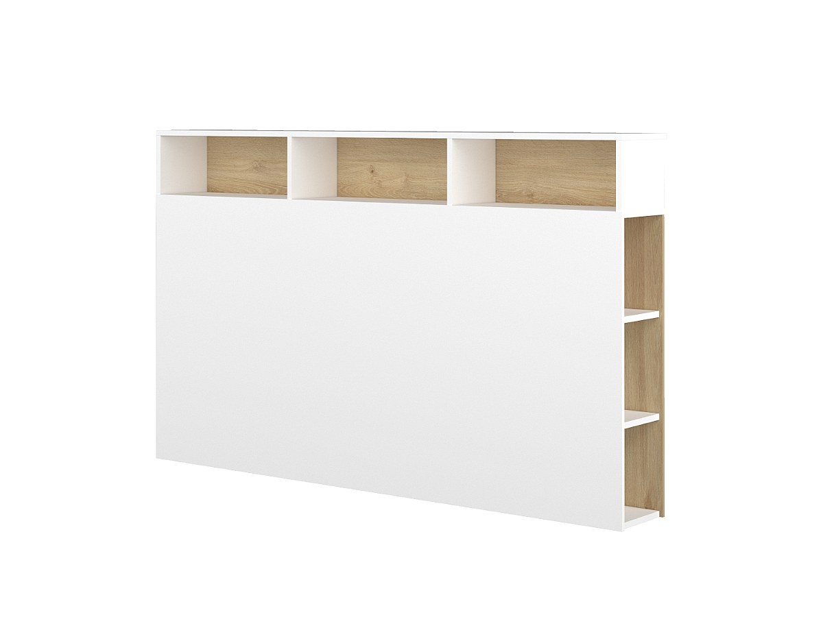 Cabeceira de cama com espaços de arrumação de 160 cm em branco e carvalho - NASTIA