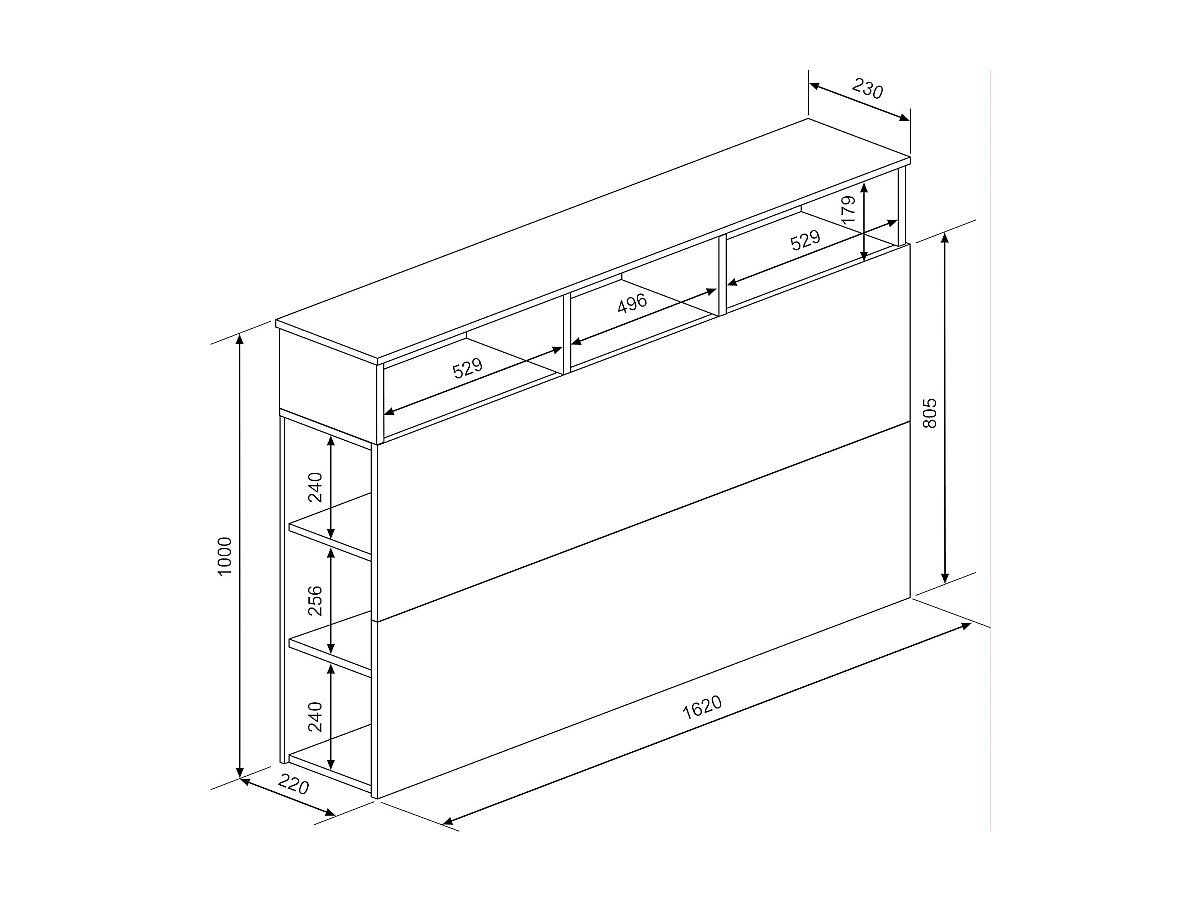 Além do seu estilo contemporâneo e das suas cores suaves, a cabeceira de cama NASTIA surpreendê-lo-á com os seus 9 nichos de arrumação incluídos!