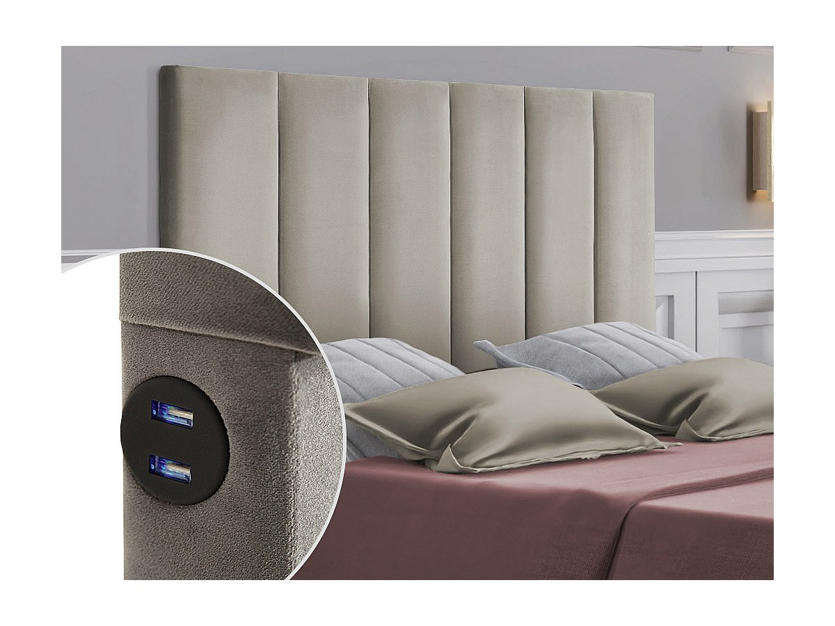 Cabeceira de cama costuras verticais 140 cm com portas USB em Veludo Bege - INGA