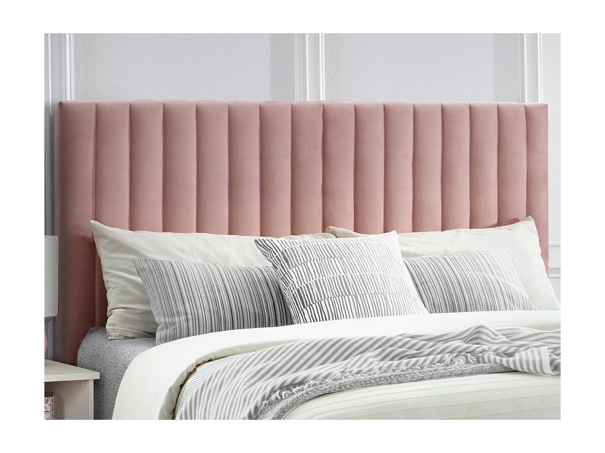 Cabeceira de cama costuras verticais AGENORE - Tecido efeito veludo - 160 cm - Rosa