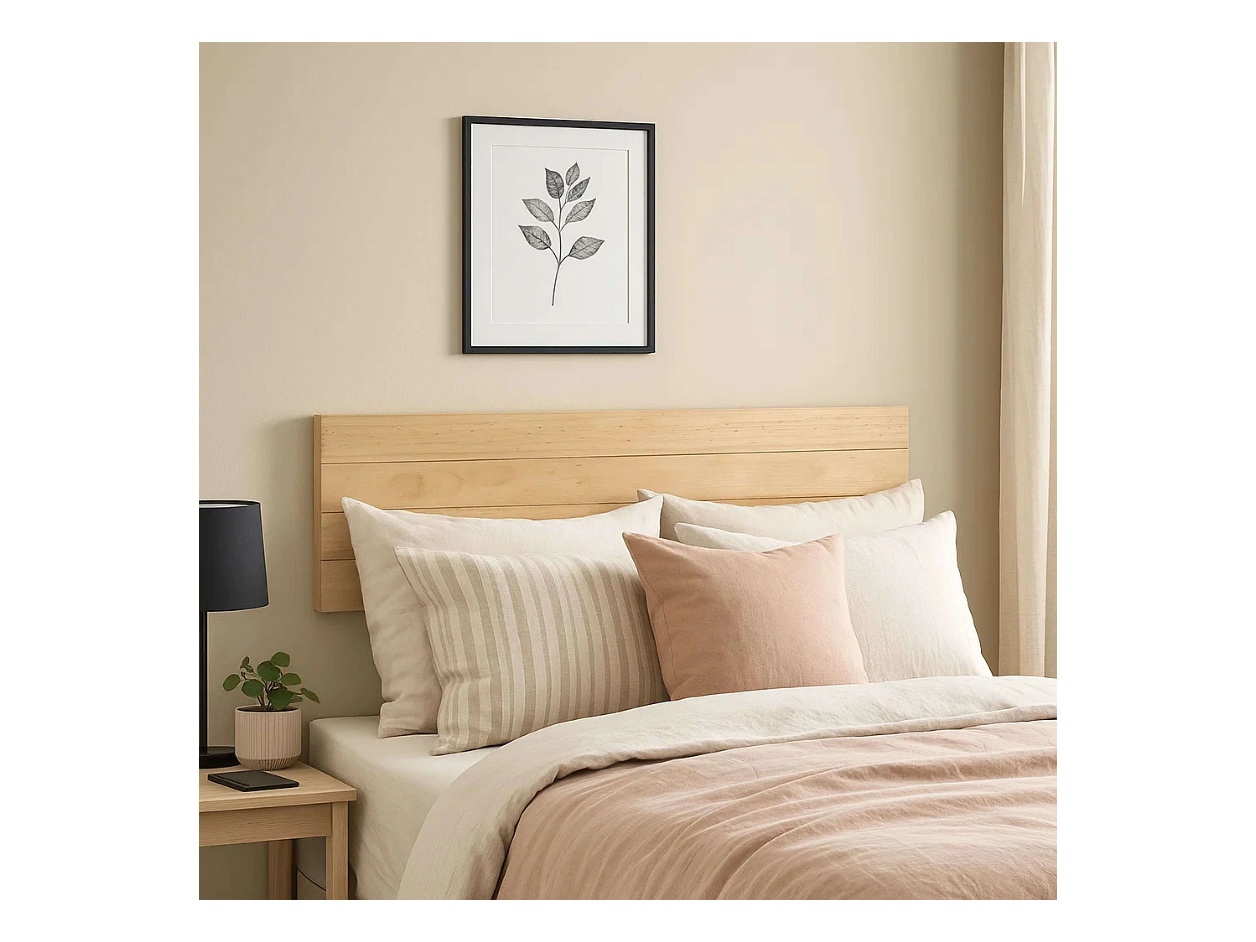 Cabeceira de cama em tecido bege