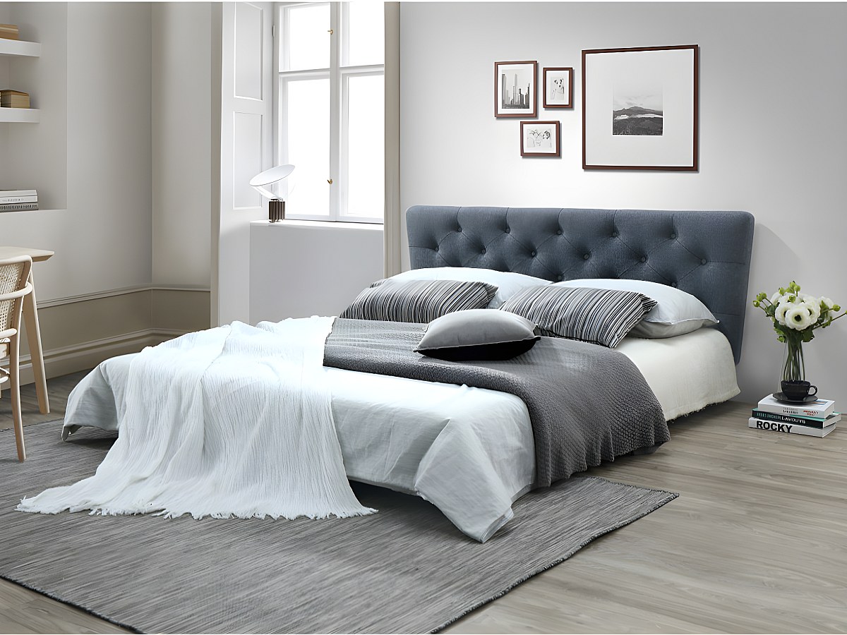 Dê conforto e estilo escandinavo à sua cama com a cabeceira de cama GUNNILLA! Cabeceira de cama escandinava GUINILLA Tecido de 2 tamanhos: 140 e 160 cm Cinzento