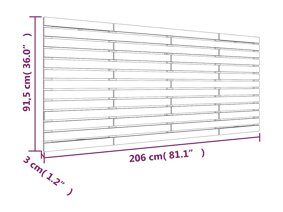 Cabeceira de parede 206x3x91,5 cm madeira de pinho maciça