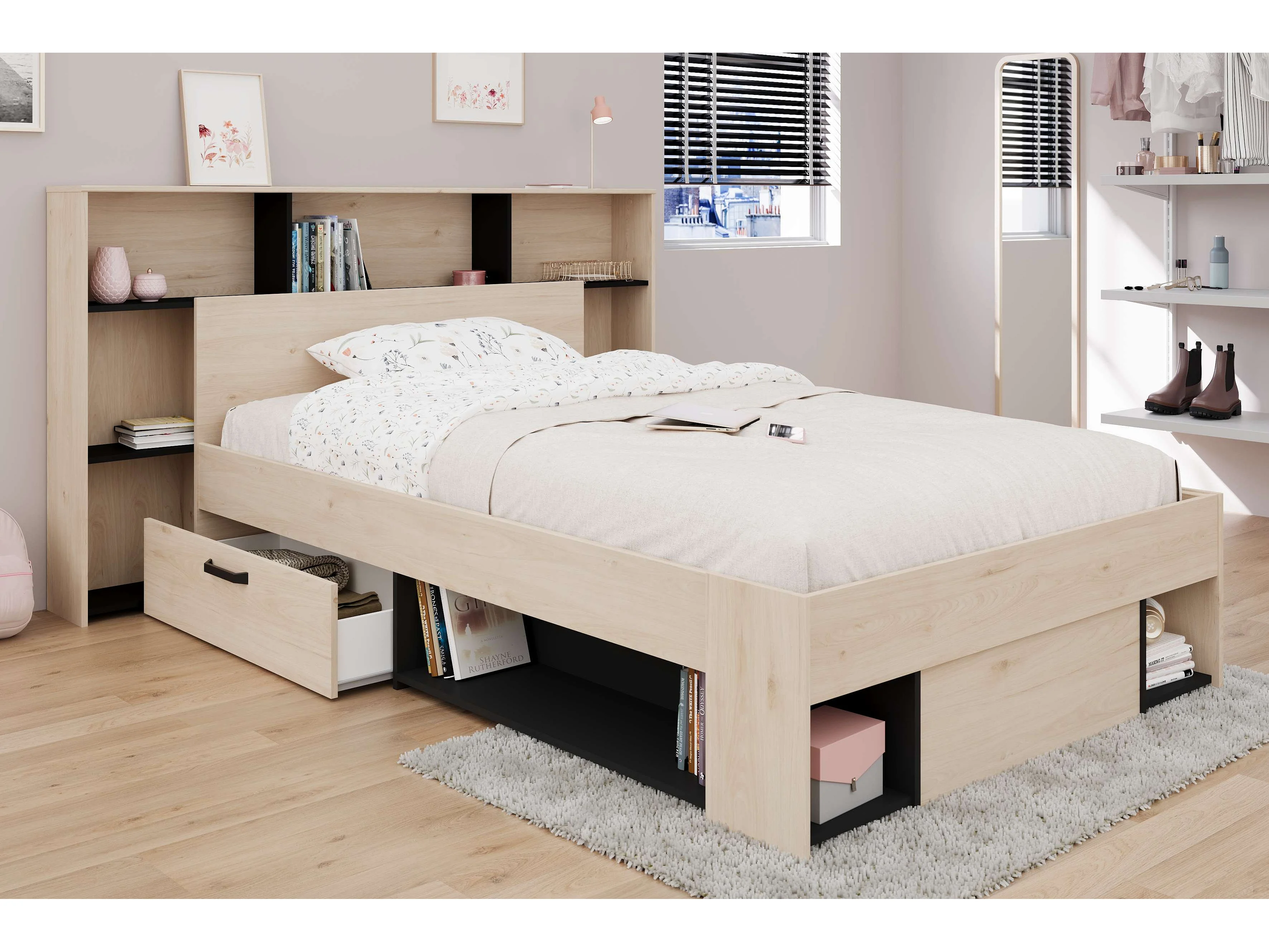 Cabeceira de quarto Thalos Carvalho Jackson e melamina preta 182x103,5x21,6 cm