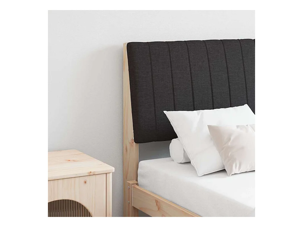 Cabeceira estofada Preto 135 cm Madeira de Pinheiro Sólida