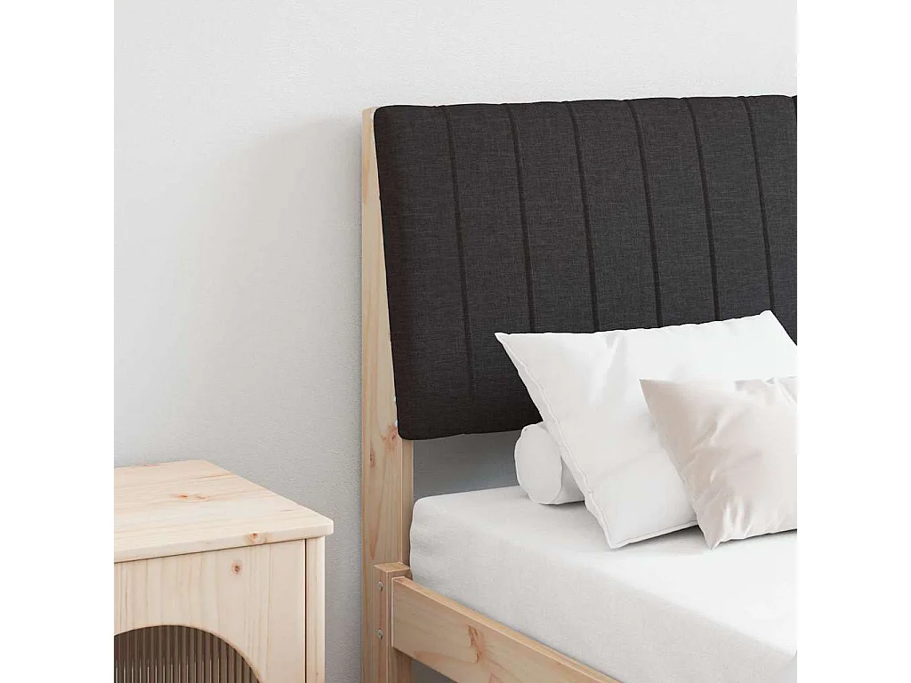 Cabeceira estofada Preto 140 cm Madeira de Pinheiro Sólida