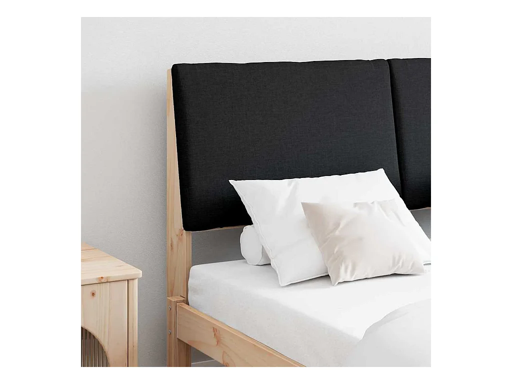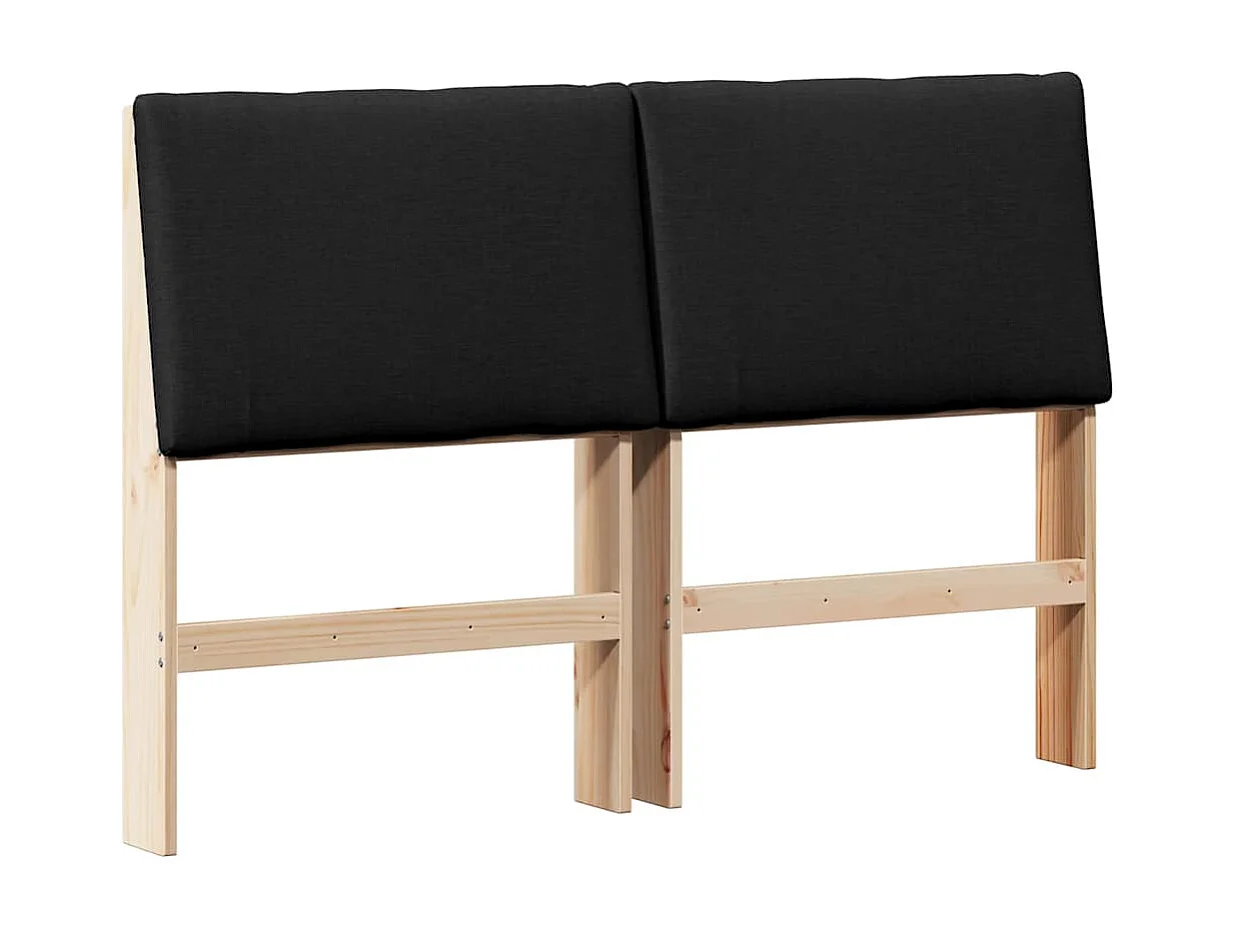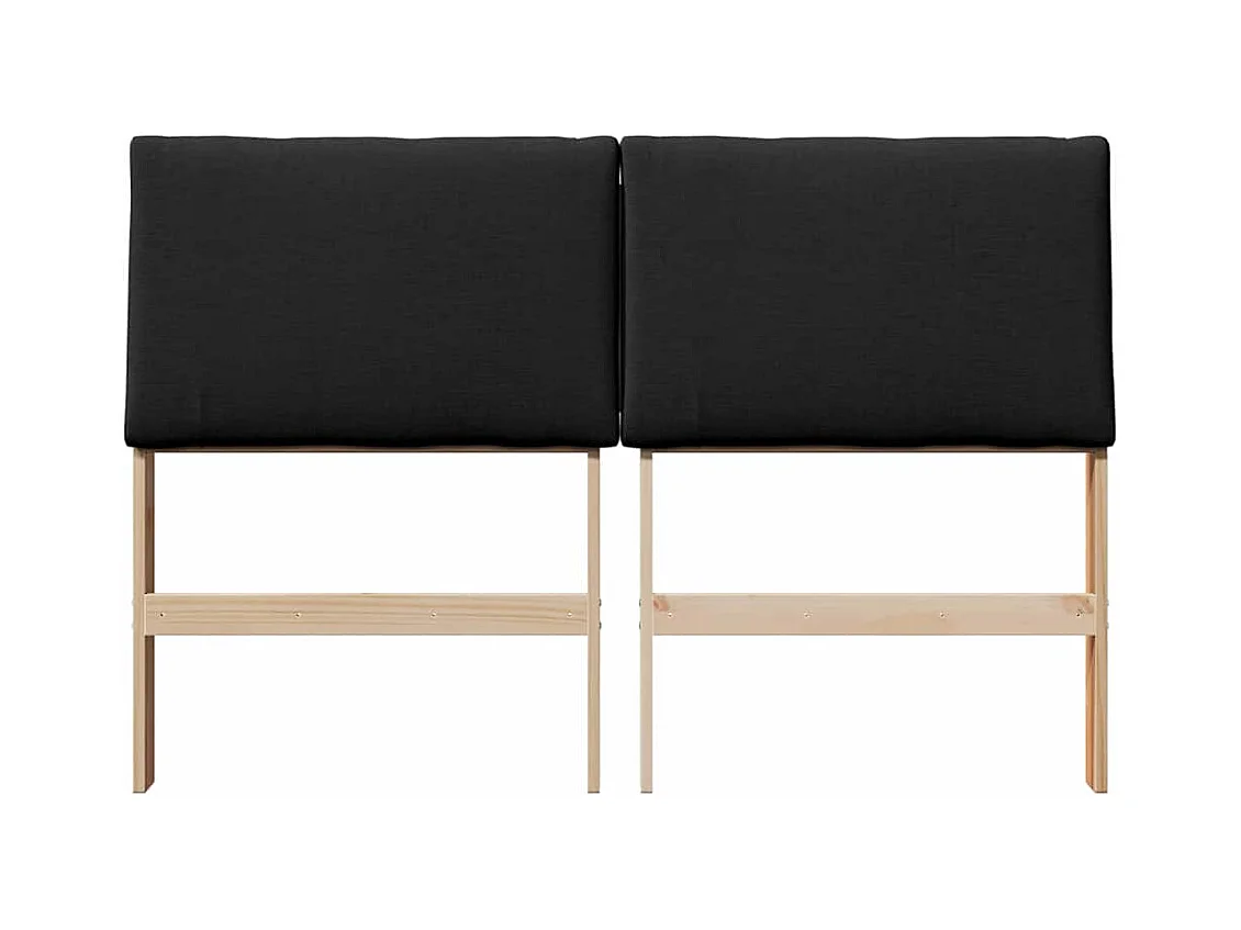 Cabeceira estofada Preto 140 cm Madeira de Pinheiro Sólida