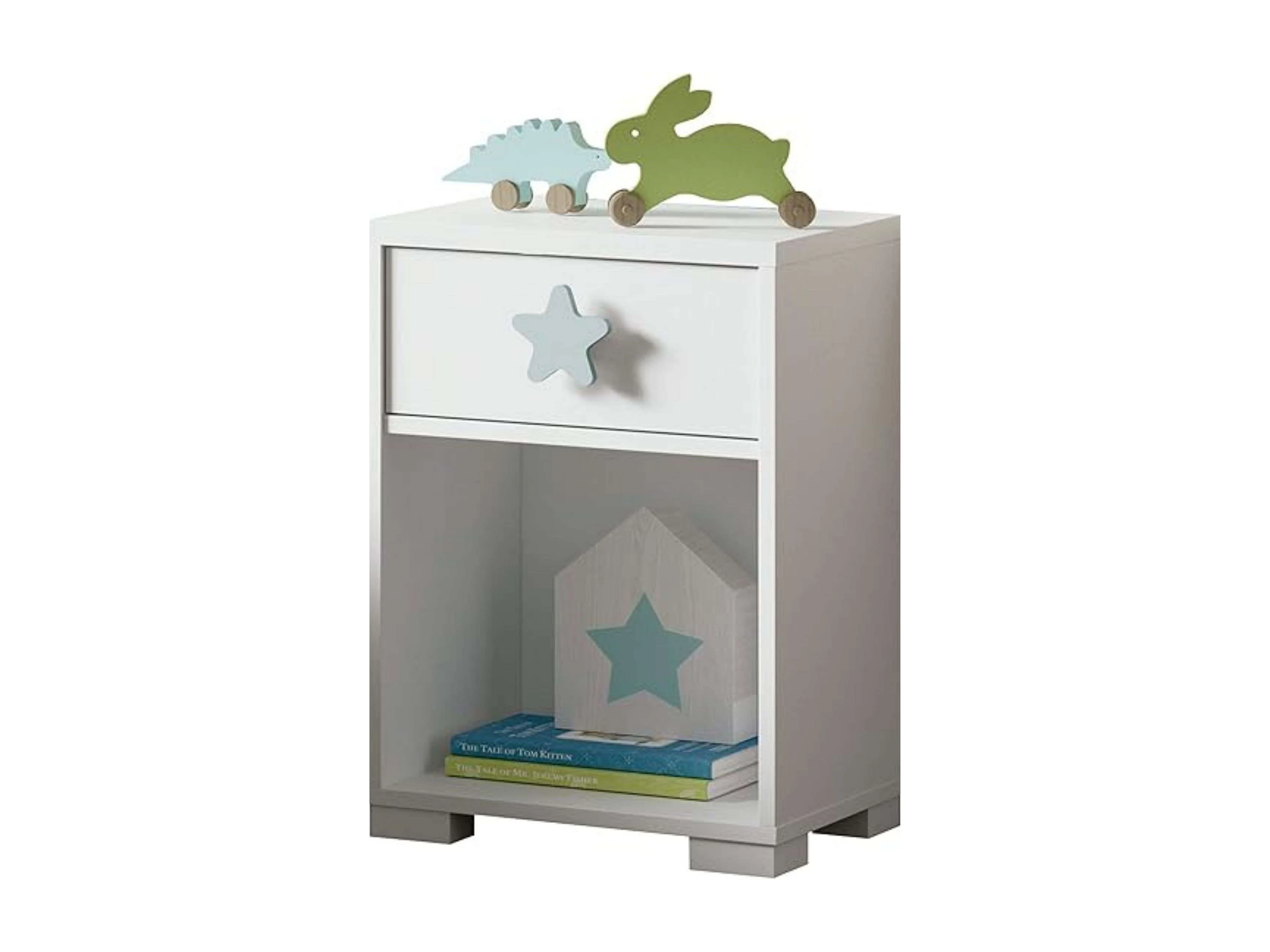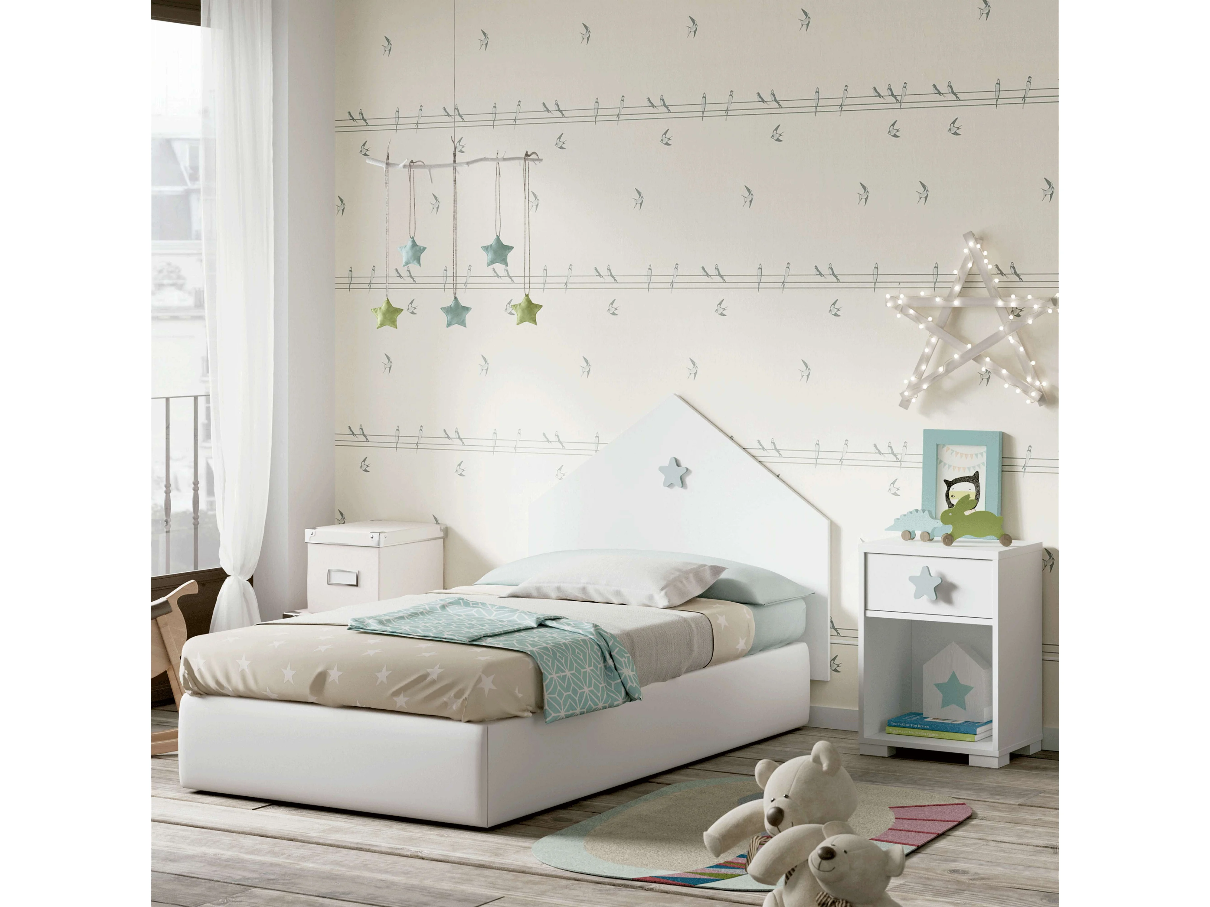 Cabeceira + Mesa de Cabeceira Infantil Quarto Branco Shine Star Quarto Cinza