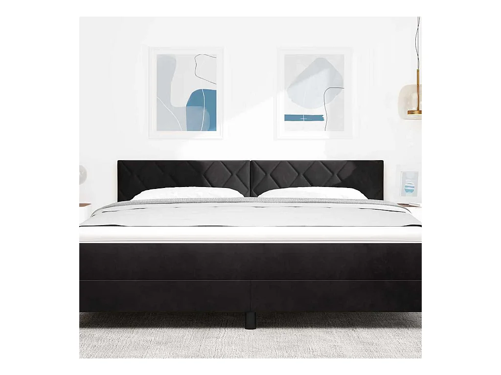 Cabeceira Montado na parede Geométrico Preto 180 cm Veludo