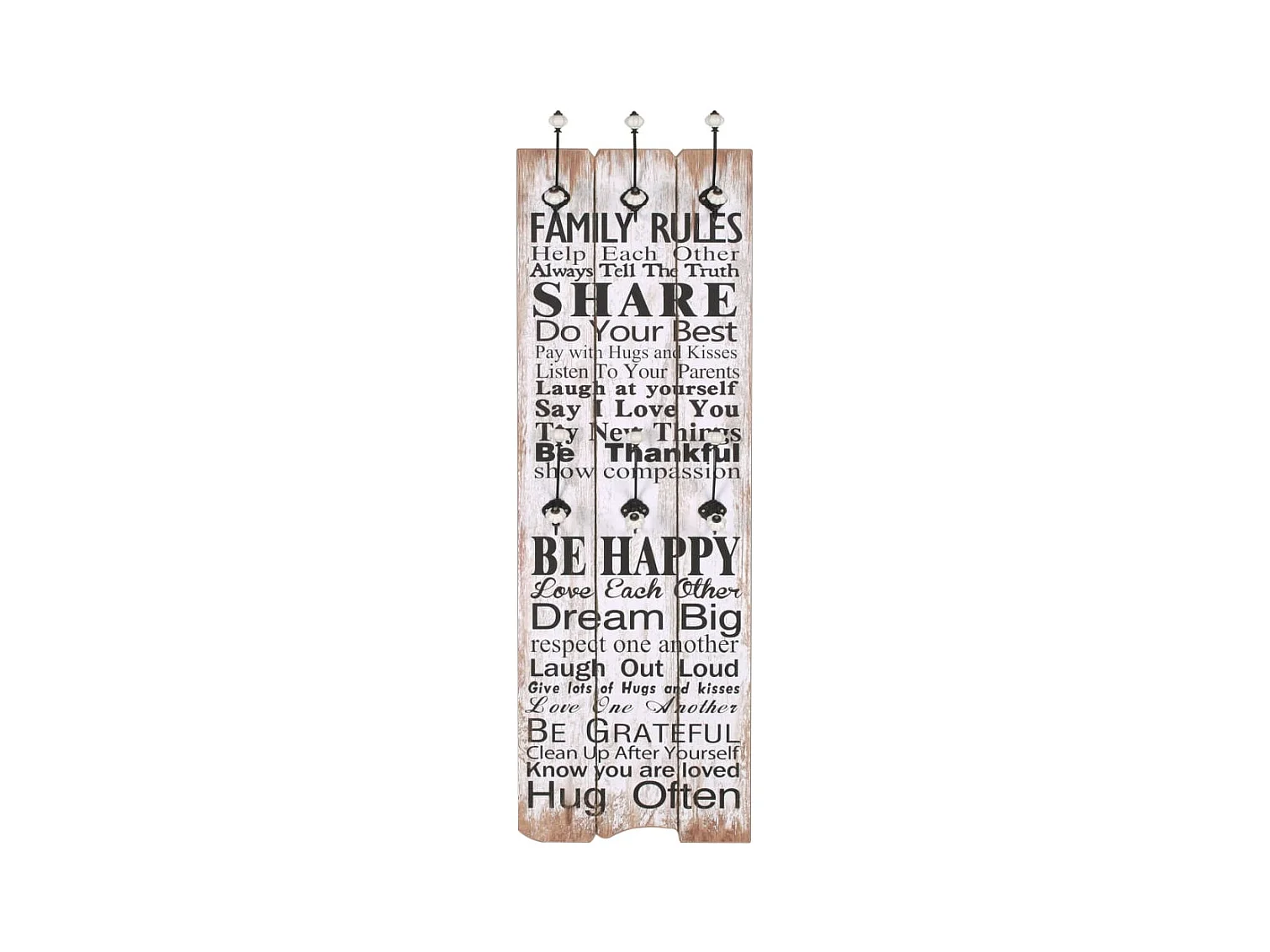 Cabide de parede com 6 ganchos 120 x 40 cm REGRAS DE FAMÍLIA