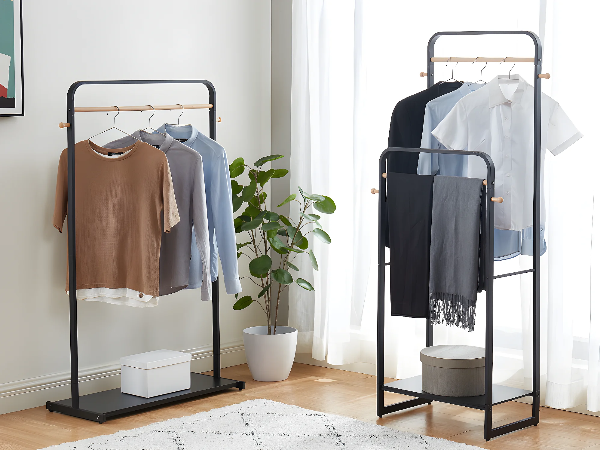 Cabide de roupa duplo de C65 cm em metal preto e madeira de faia - SELIN
