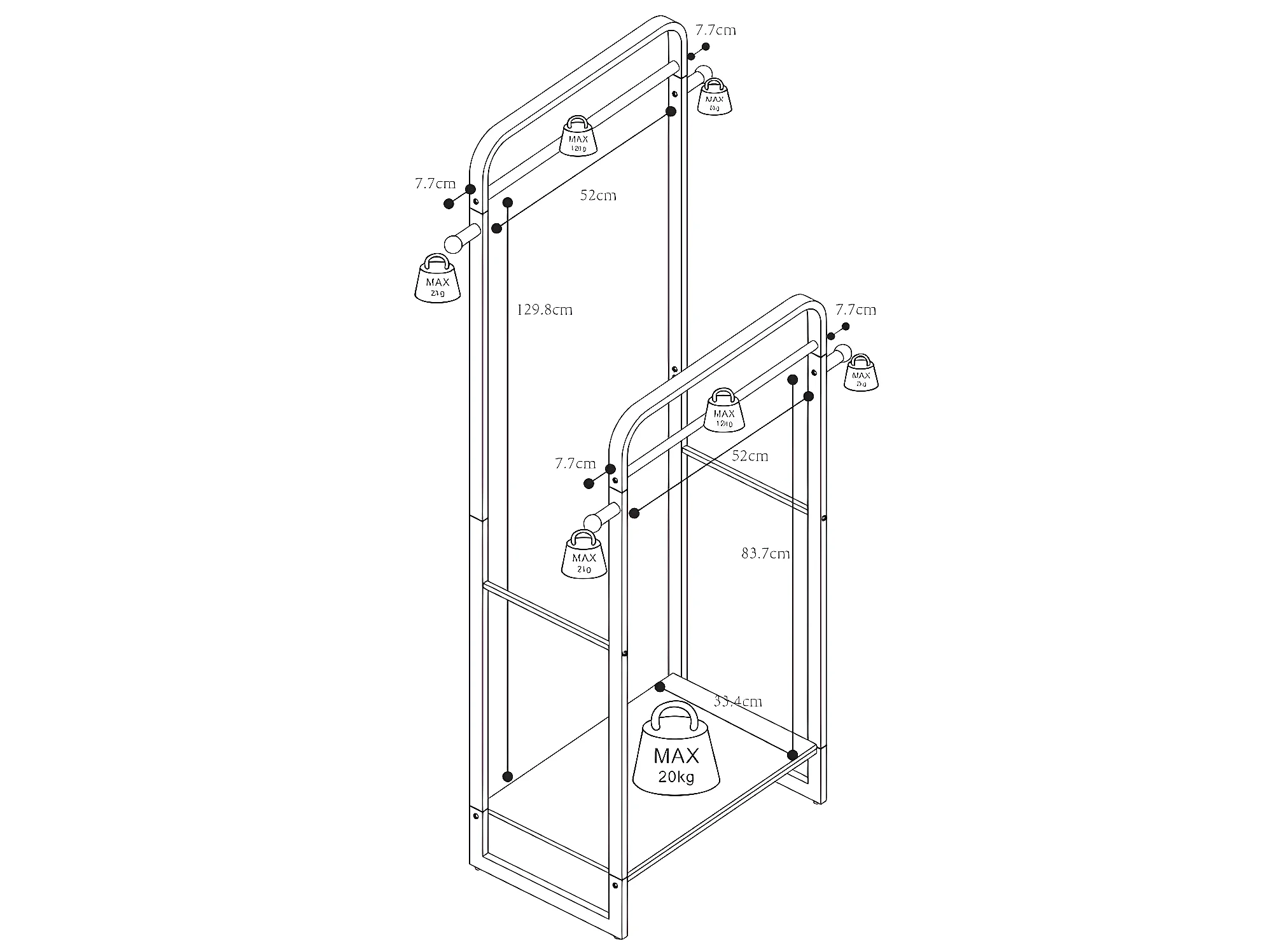 Cabide - A105cm x L45cm x F41cm - faia maciça cinza - Sedie