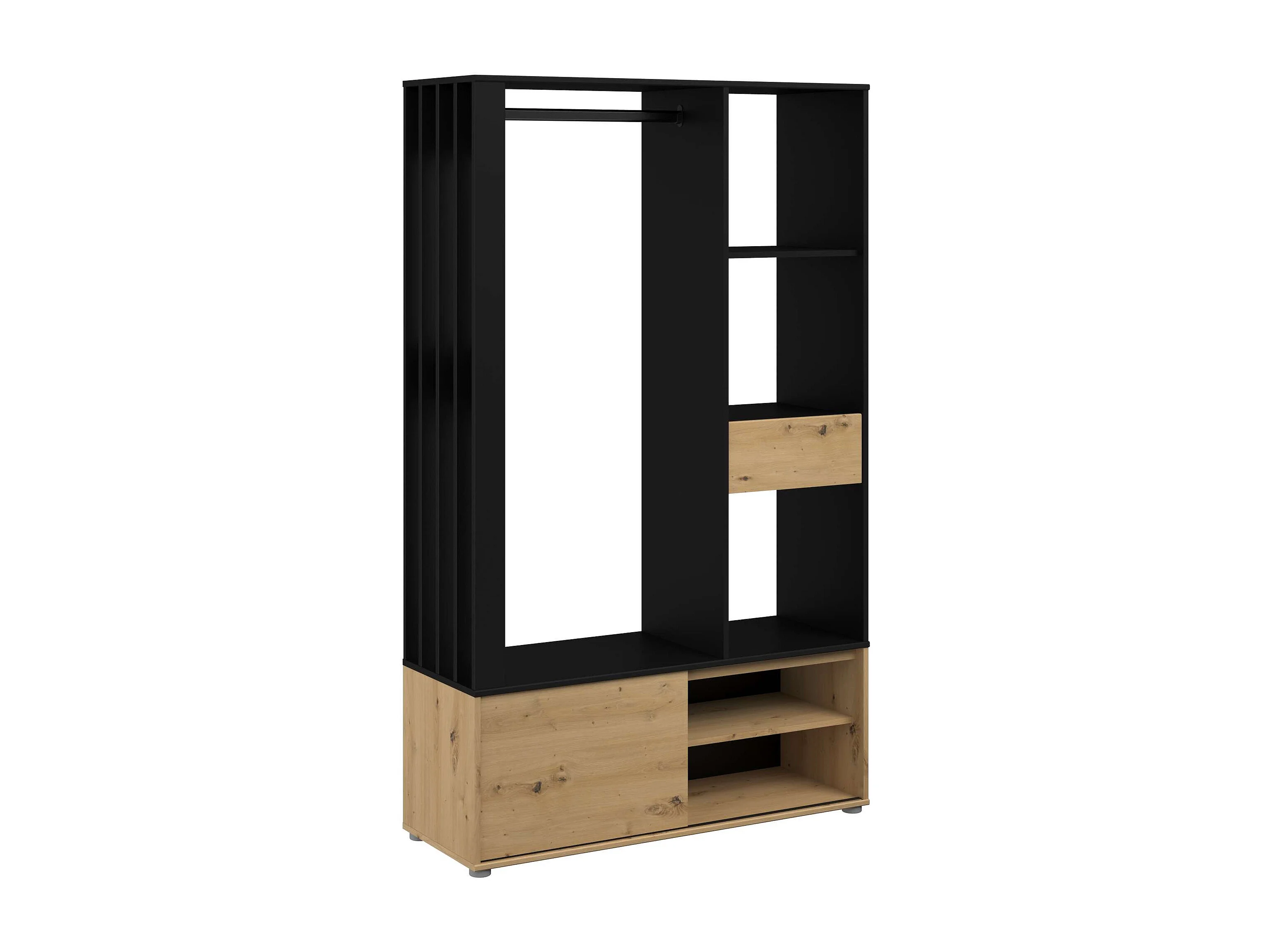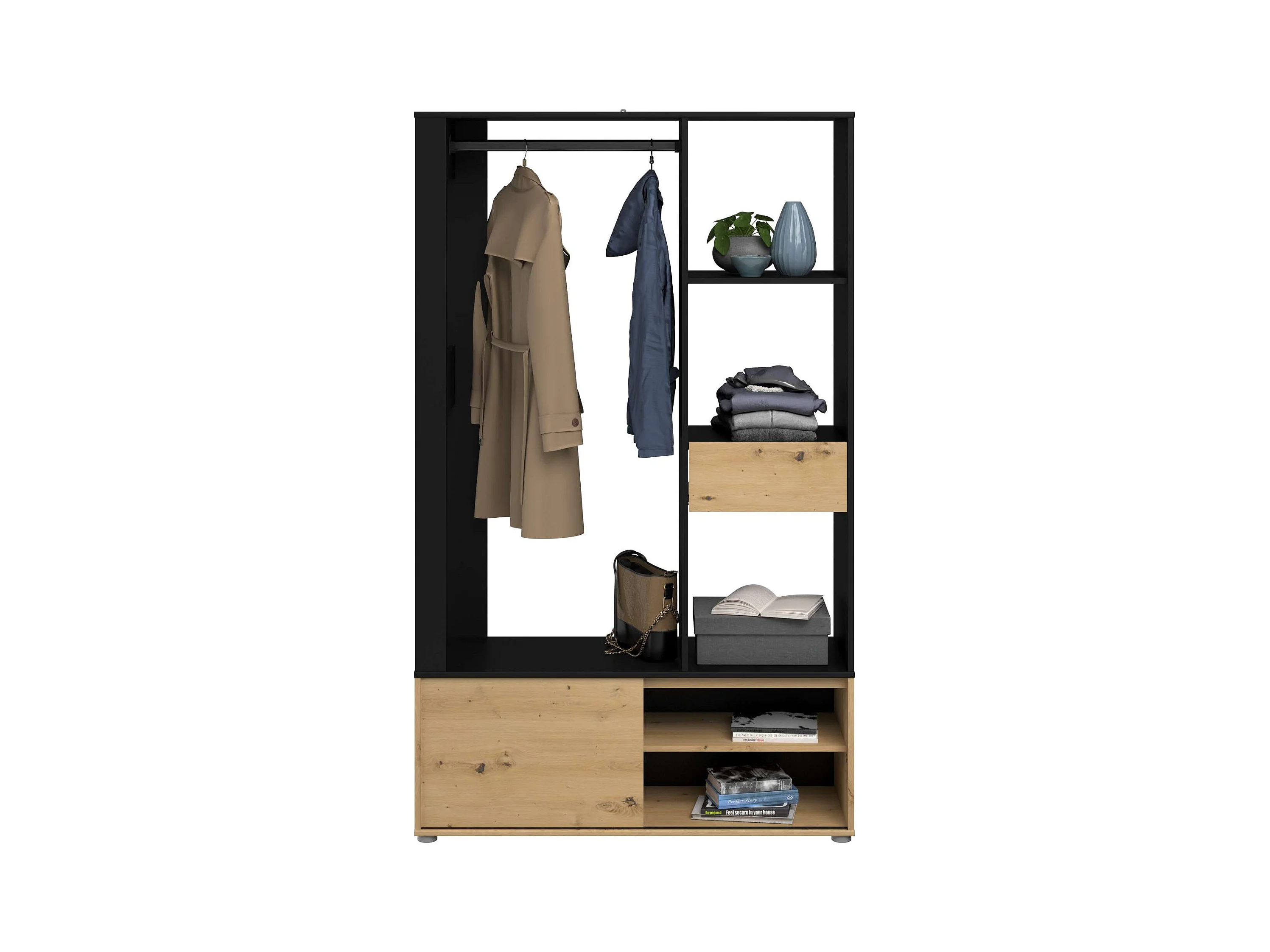 Cabide vazio com gaveta, porta de correr, carvalho e preto, 110x183x40 cm