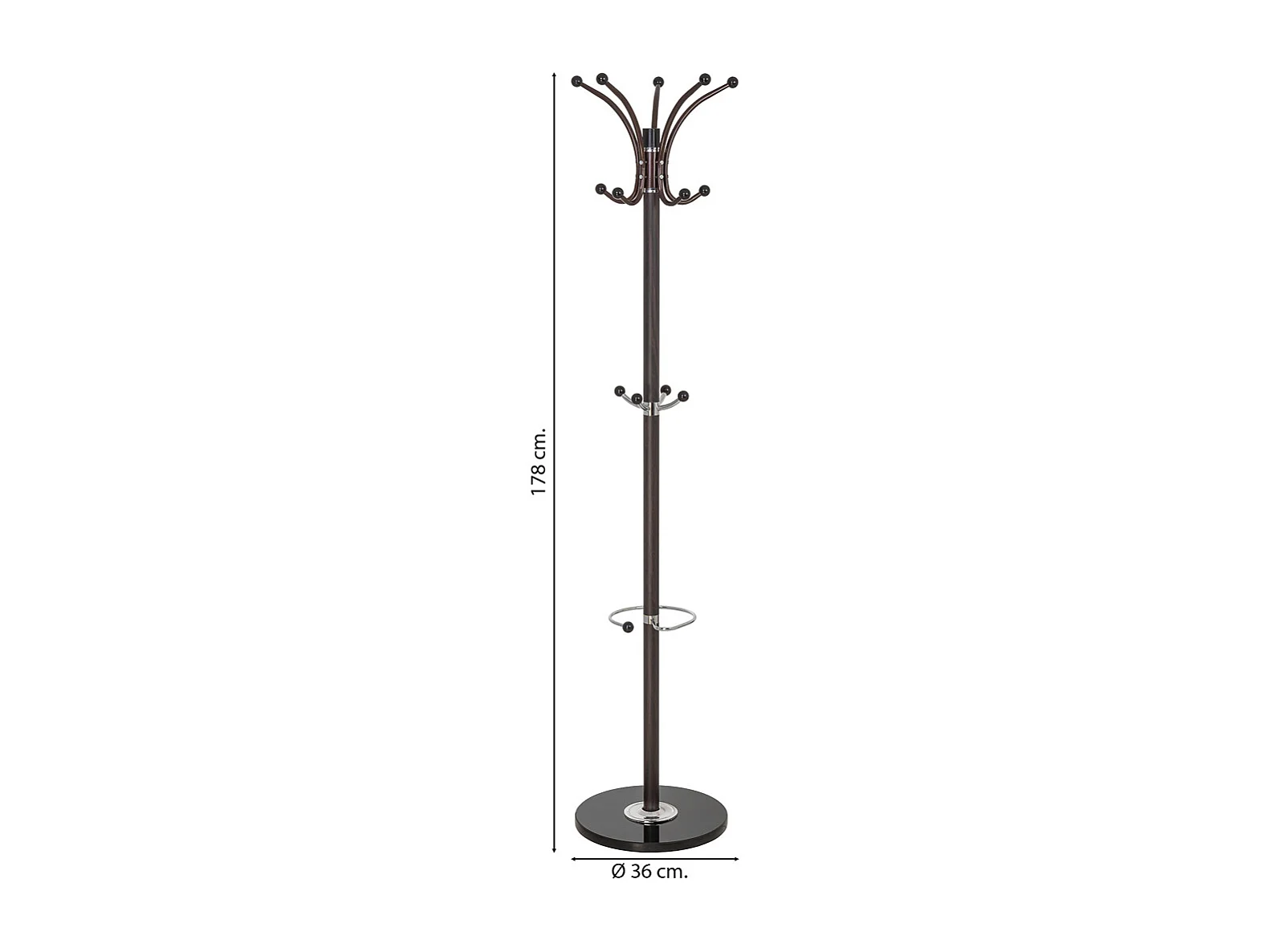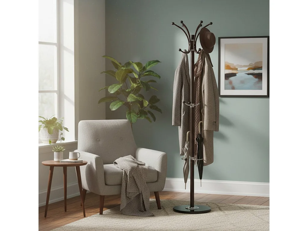 Cabideiro de metal marrom com porta-guarda-chuva e 5 ganchos D36x178h cm