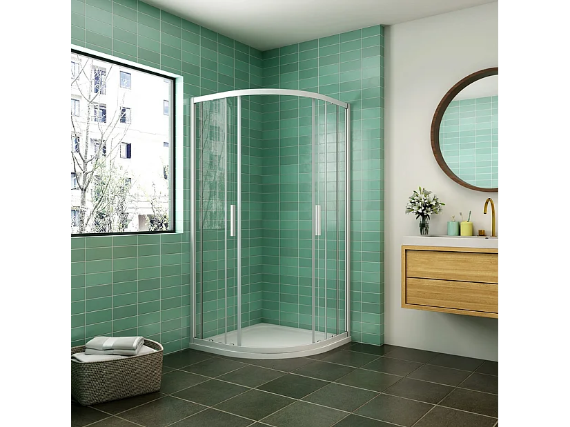 Cabine de duche 1/4 círculo correr Perfil cinza fosco Vidro temperado 5mm (880-900)x(1180-1200)x1850mm-AICA