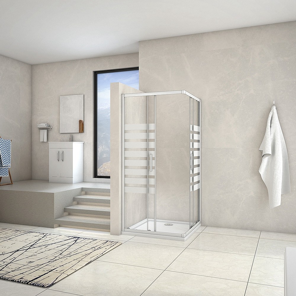 Cabine de duche quadrada correr Perfil cinza fosco Vidro temperado serigrafado 5mm (680-700)x(680-700)x1950mm-AICA