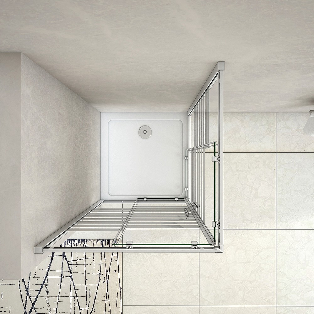 Porta de duche correr frontal e um Painel lateral Perfil cromado Vidro temperado 6mm (1175-1195)x(983-1003)x1950mm-AICA