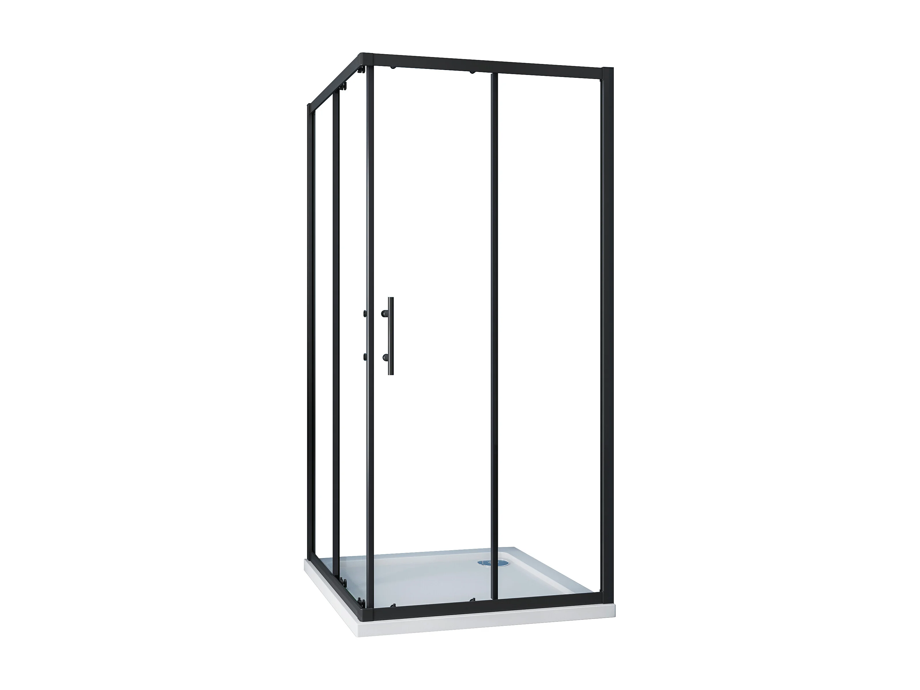 Cabine de duche quadrada correr Perfil preto mate Vidro Anticalcário 6mm (680-700)x(680-700)x1900mm-AICA