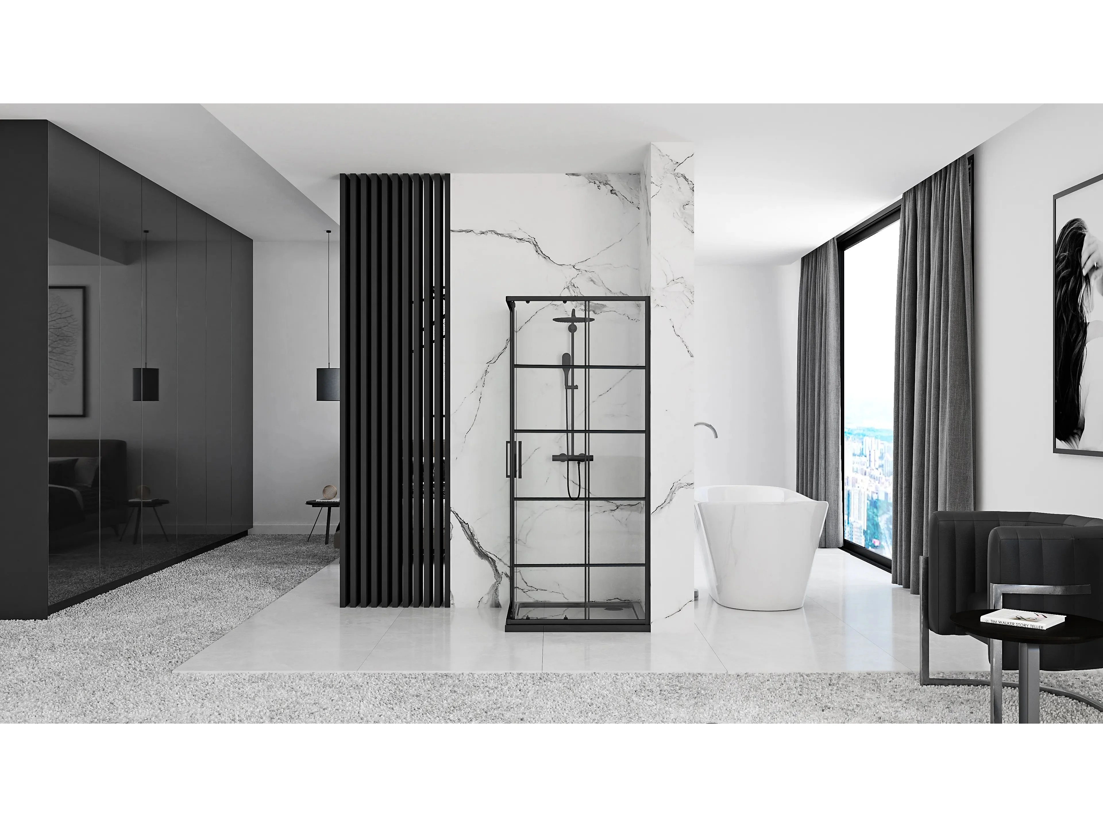 Cabine De Duche Rea Concept 90X90 Black + Base De Duche Savoy Black