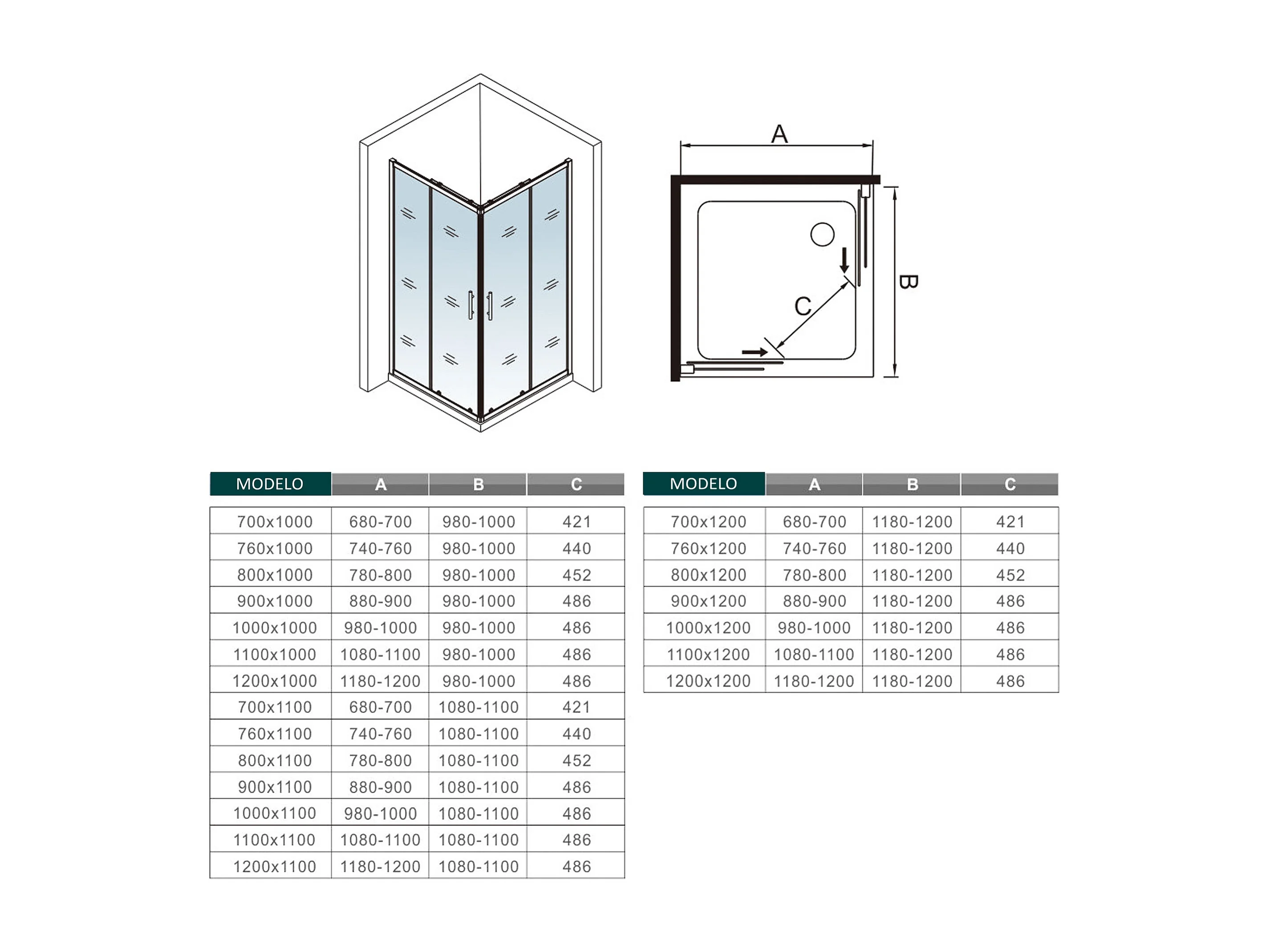 Cabine de duche rectangular correr Perfil cromado Vidro Anticalcário 6mm (1080-1100)x(880-900)x1950mm-AICA