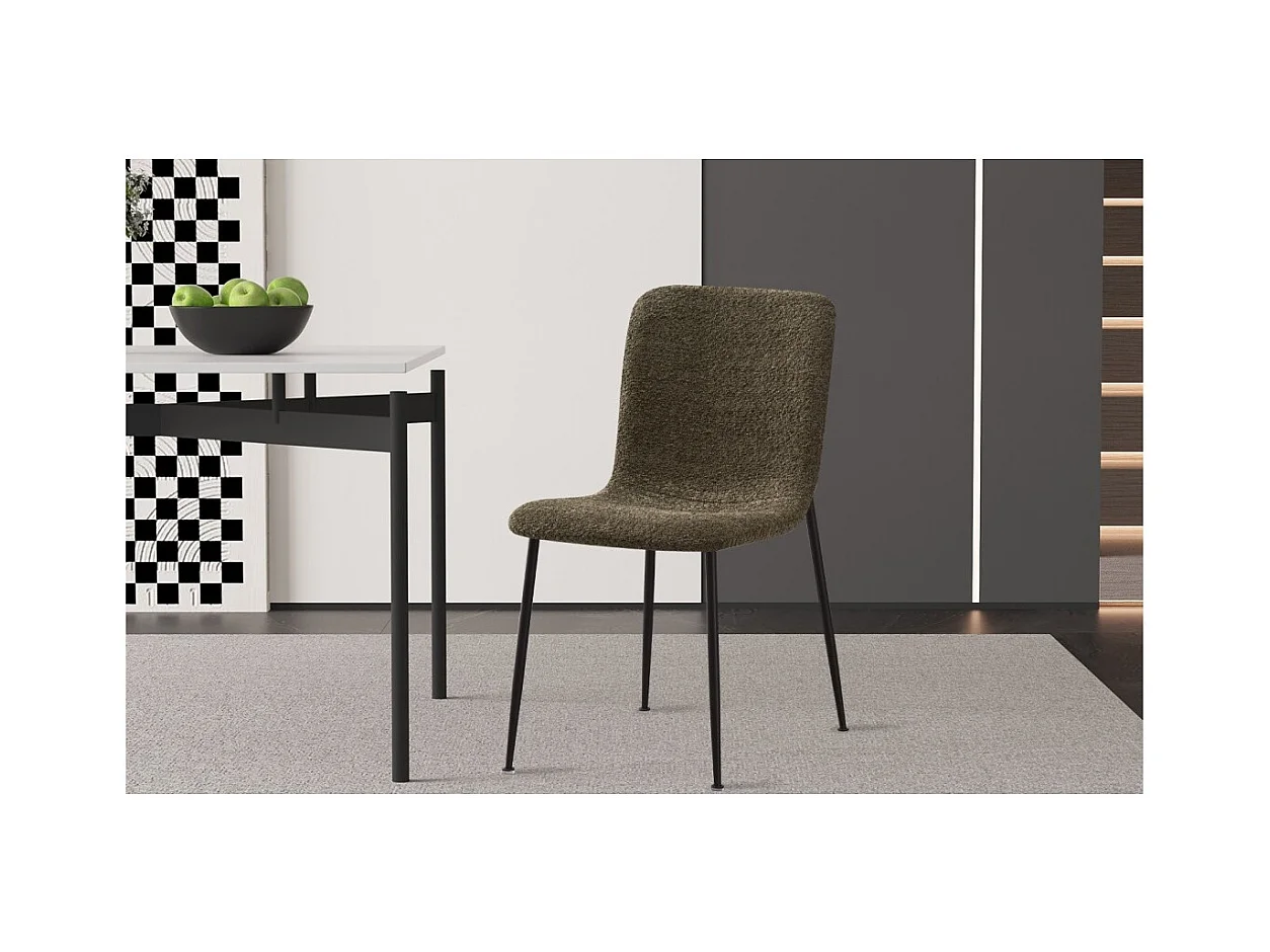 Cadeira com revestimento Bouclé para sala de jantar na cor Verde. Coleção FILOU.