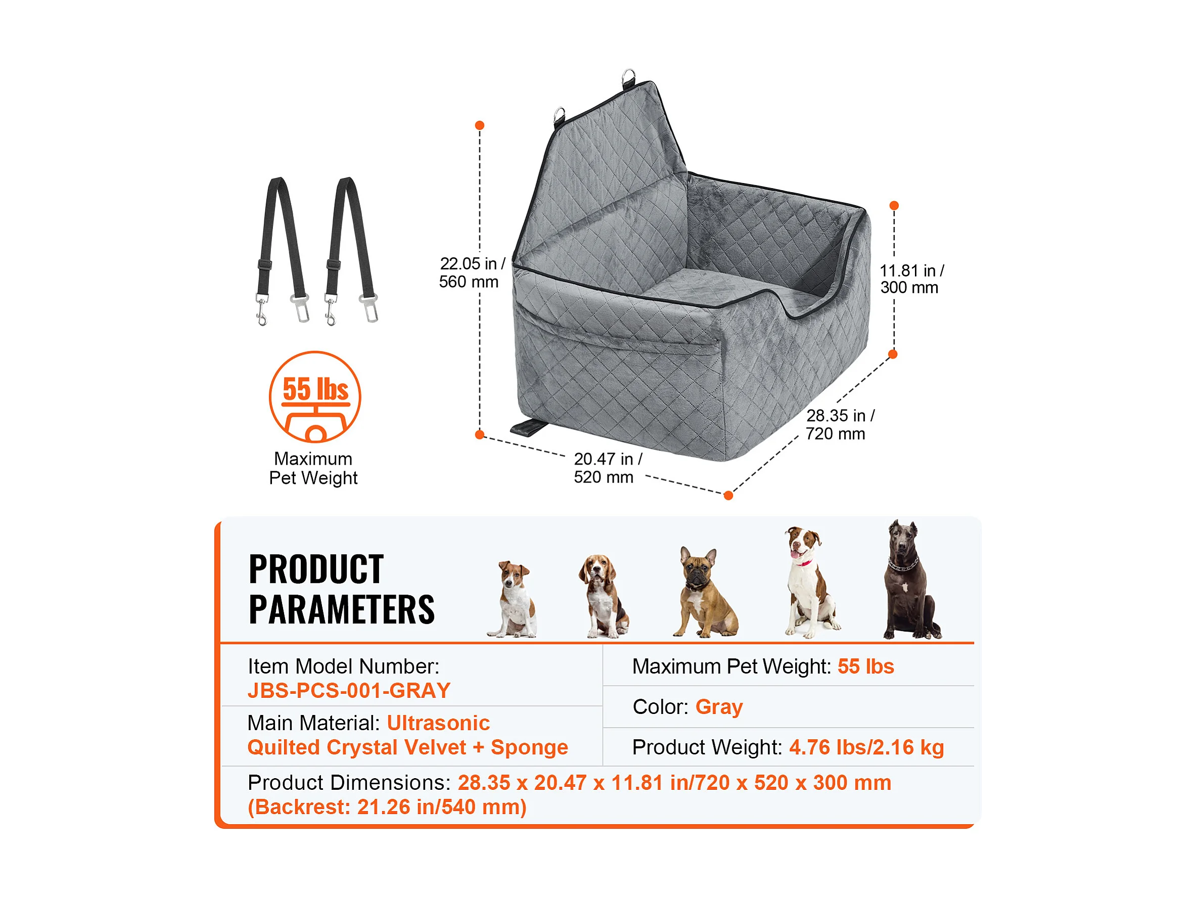 Cadeira Auto para Cães SucceBuy, Tamanho Médio/Grande (Até 25 kg), Cor Cinzenta