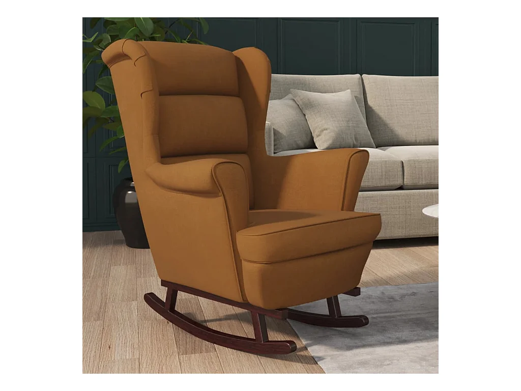 Cadeira baloiço + pernas em madeira seringueira veludo castanho PT303976