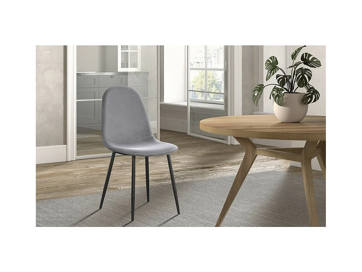 Conjunto de 4 cadeiras em veludo - estrutura em metal - design ergonómico - pernas em metal - cinzento